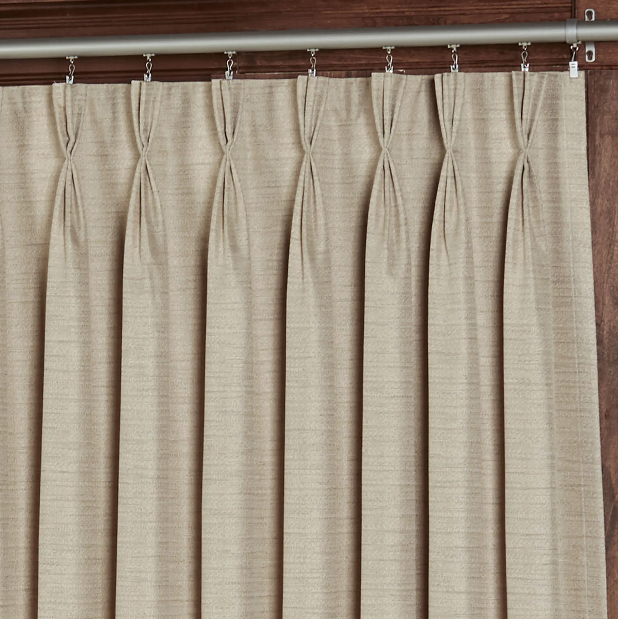 The 100"W pair includes two 50"W panels. Each panel has 10 pinch pleats or 11 hidden back tabs. For the pair, you will need a total of 24 clip rings.