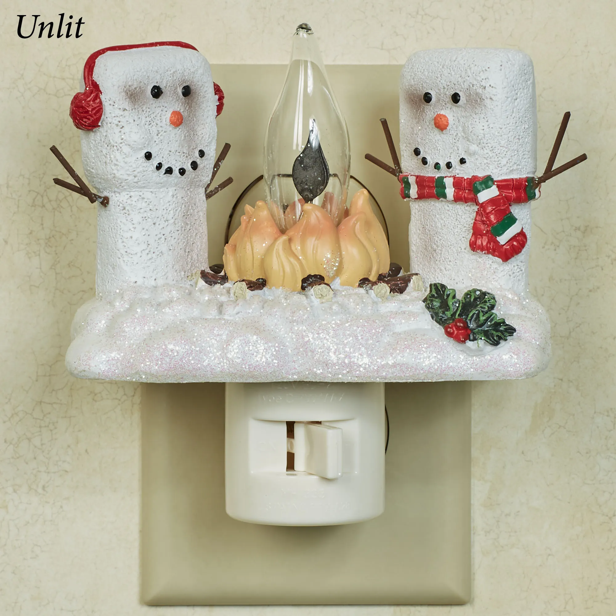 Marshmallow Snowmen Flicker Flame Winter Campfire Nightlight by Roman