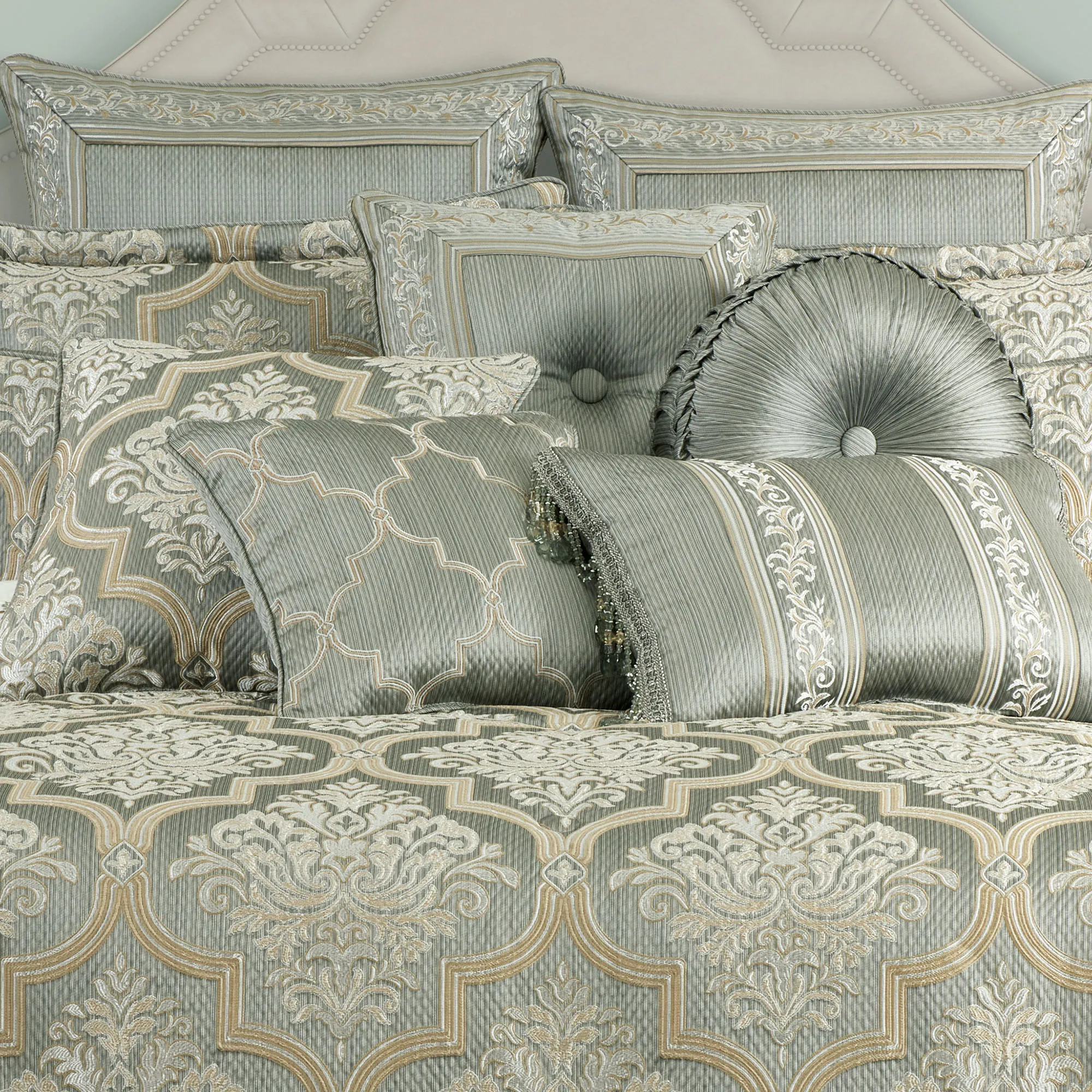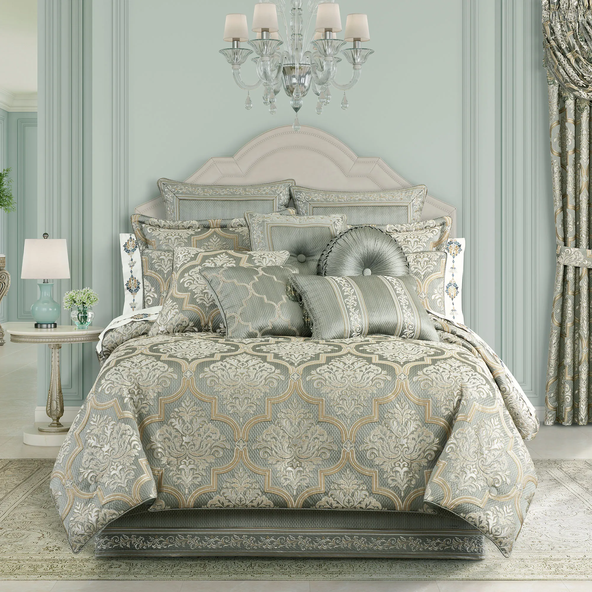 Martina Misty Sage Damask Medallion Comforter Set Luxury Bedding by J Queen New York