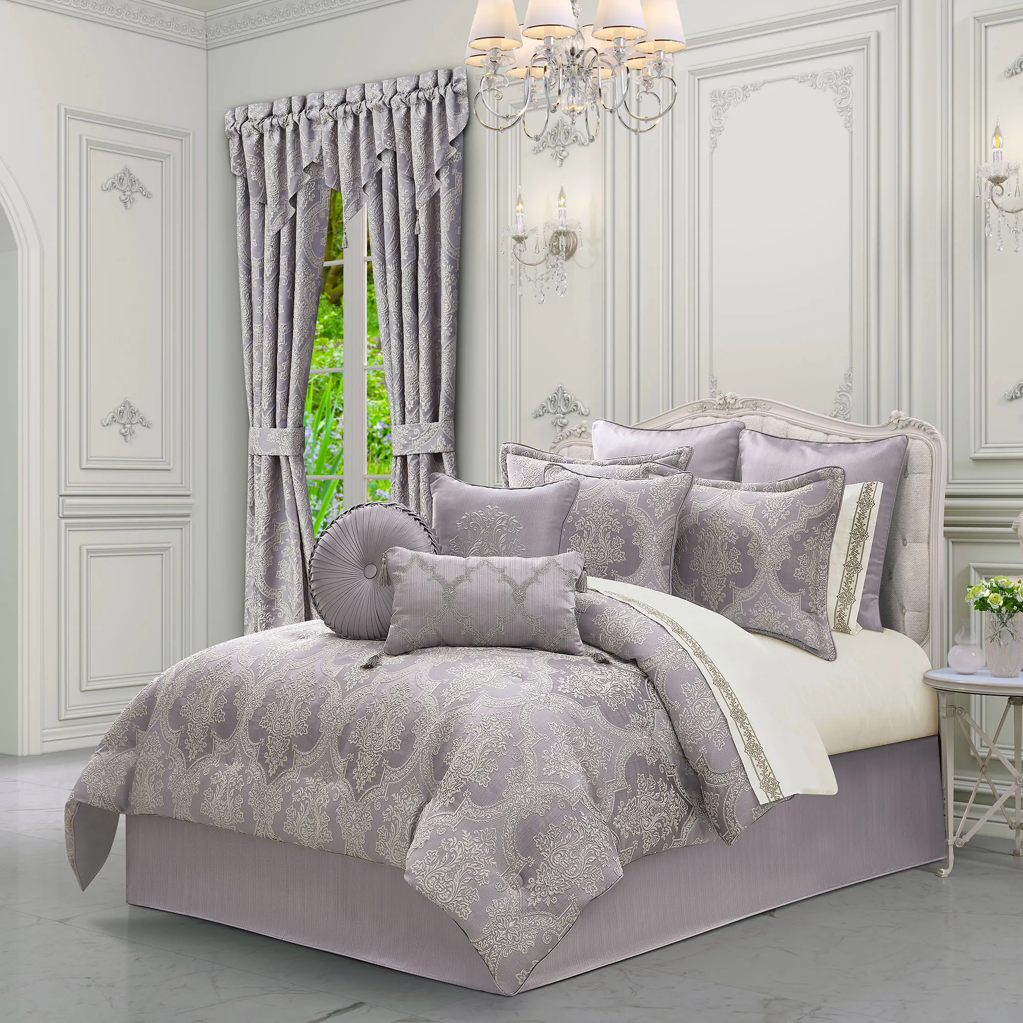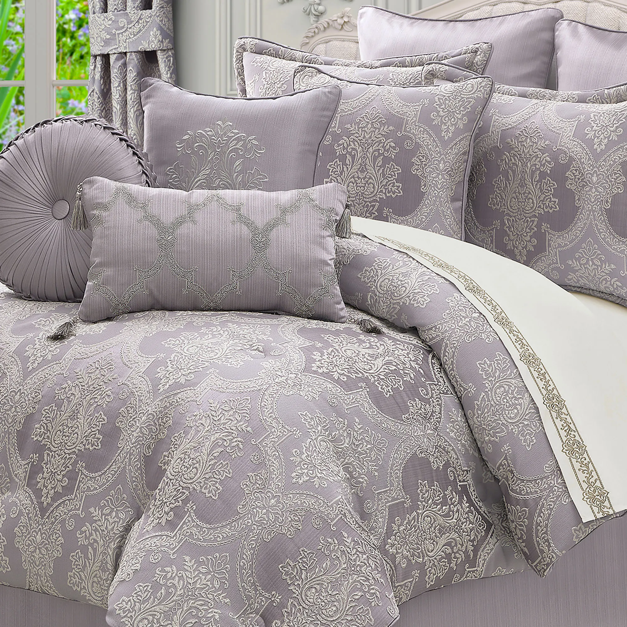 Mary Lavender Damask Comforter Set Luxury Bedding by J Queen New York