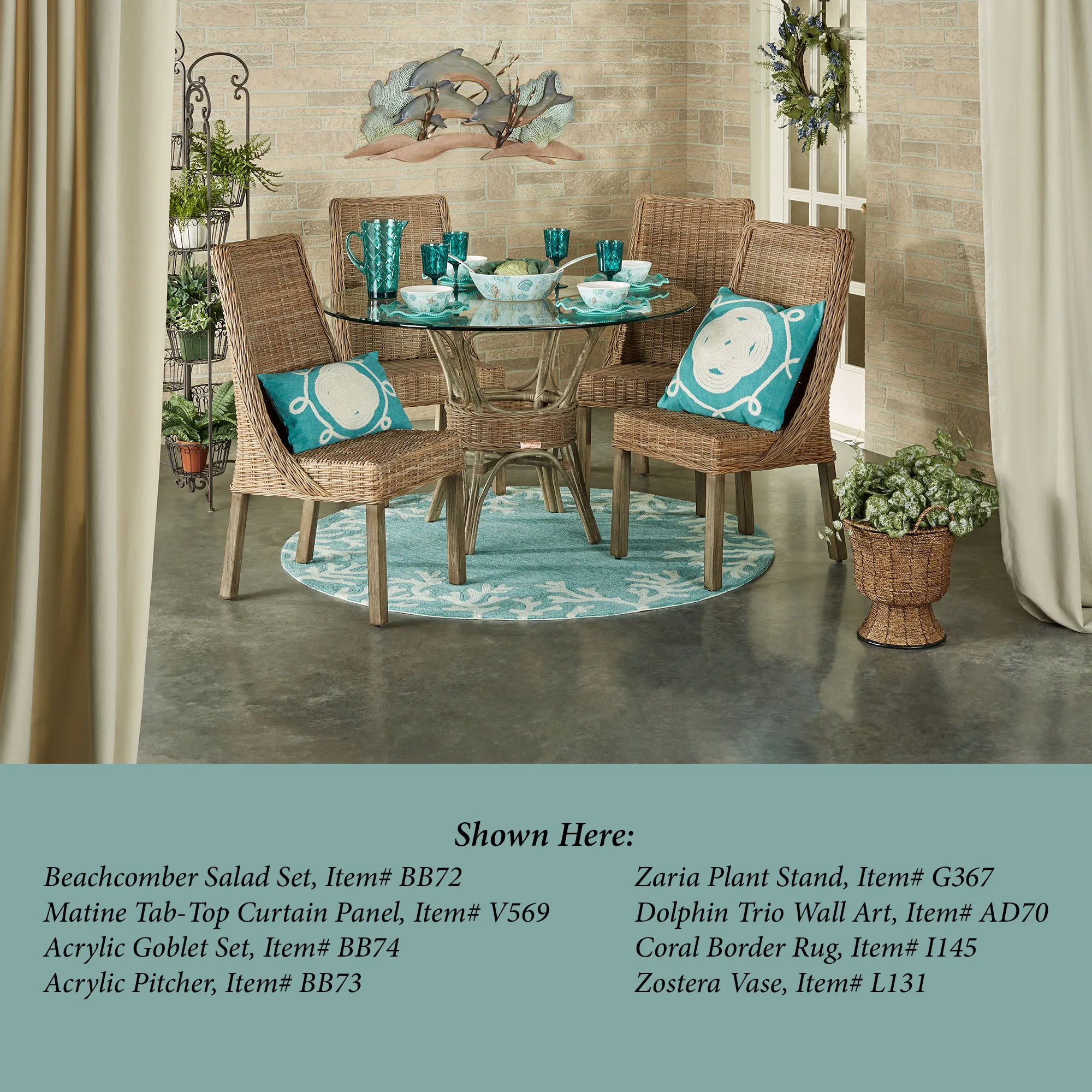 Matine Indoor/Outdoor Tab-Top Curtain Panels are polyester. Imported.
