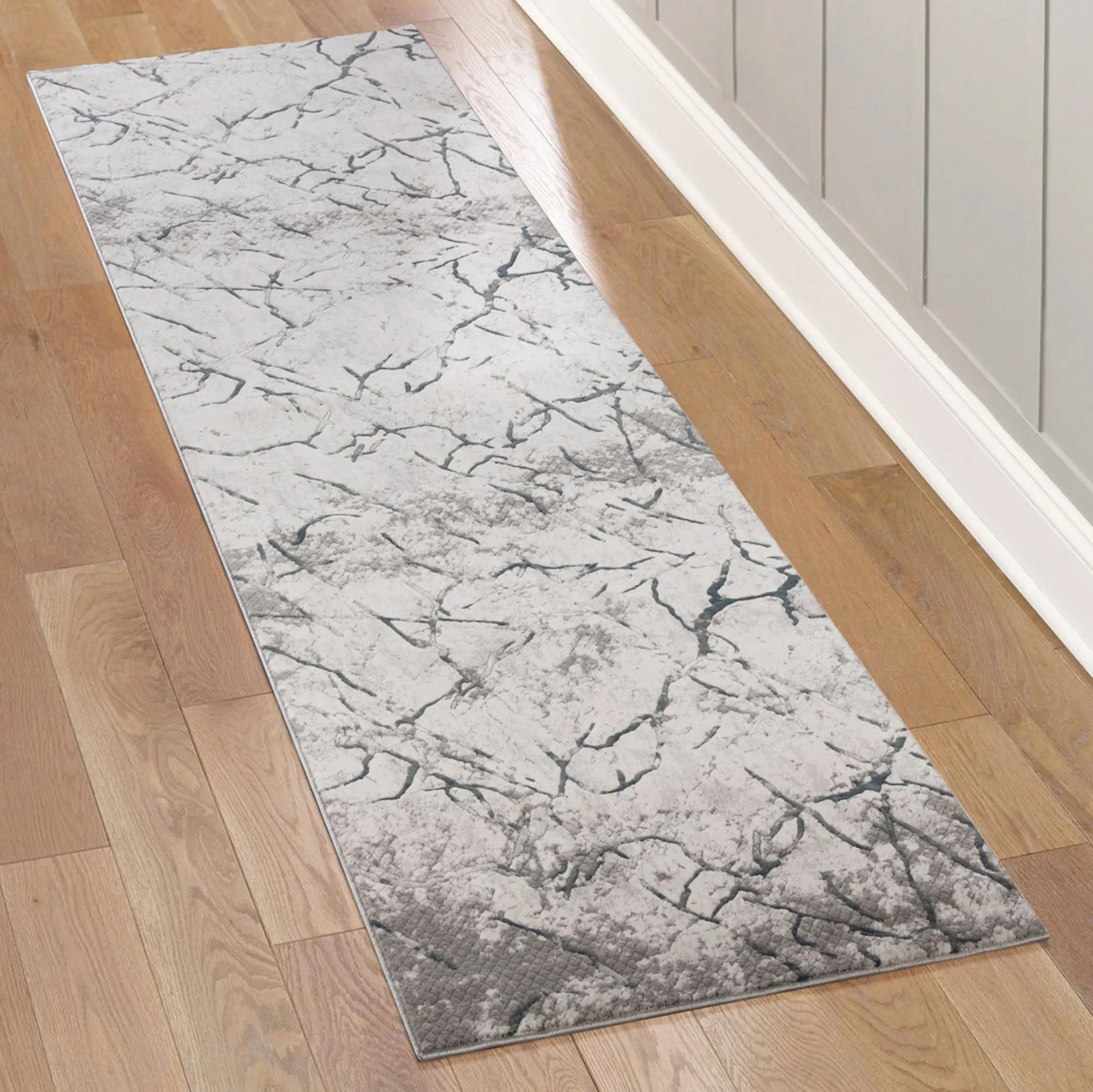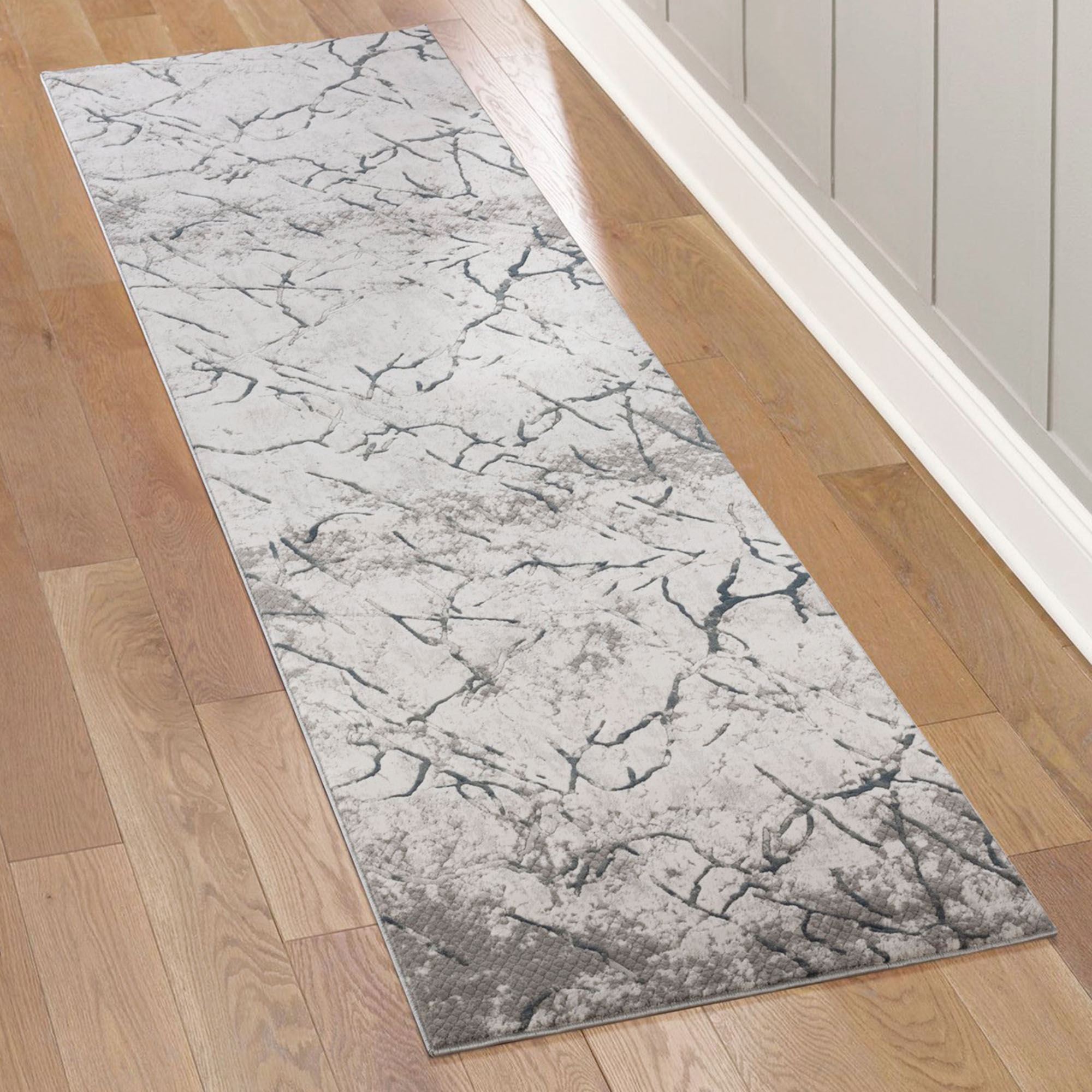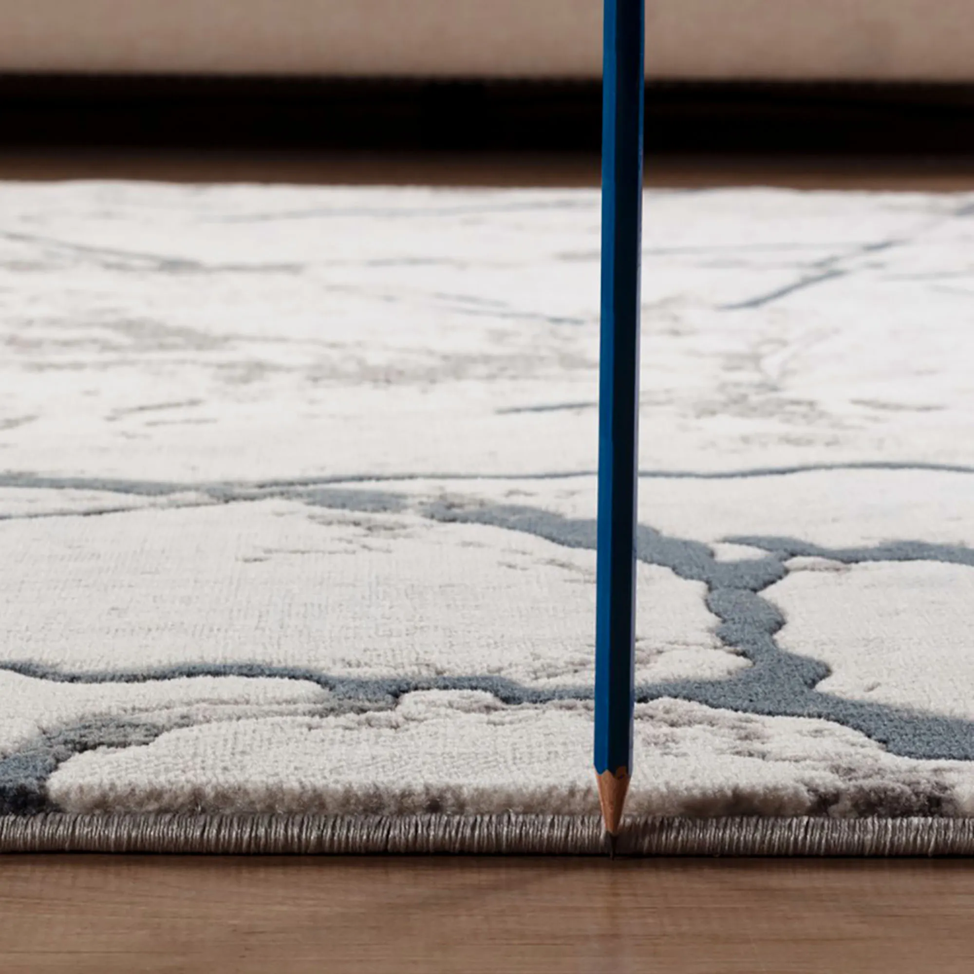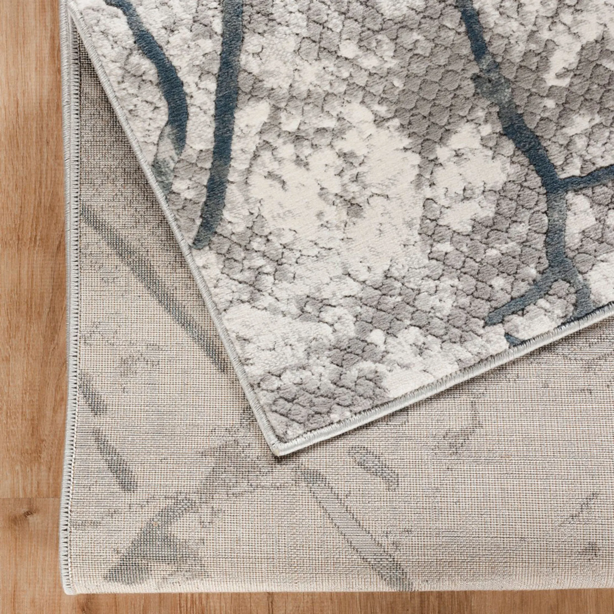 Abstract style is easily seen on the Mattias Rug. This power-loomed polyester area rug, .43" thick, has subtle carved diamond designs, along with crackle-like motifs and a distressed look. Colors include shades of gray, off-white, slate, charcoal, linen, and ivory. Backing is jute. We recommend professional cleaning by a rug cleaner. Imported.