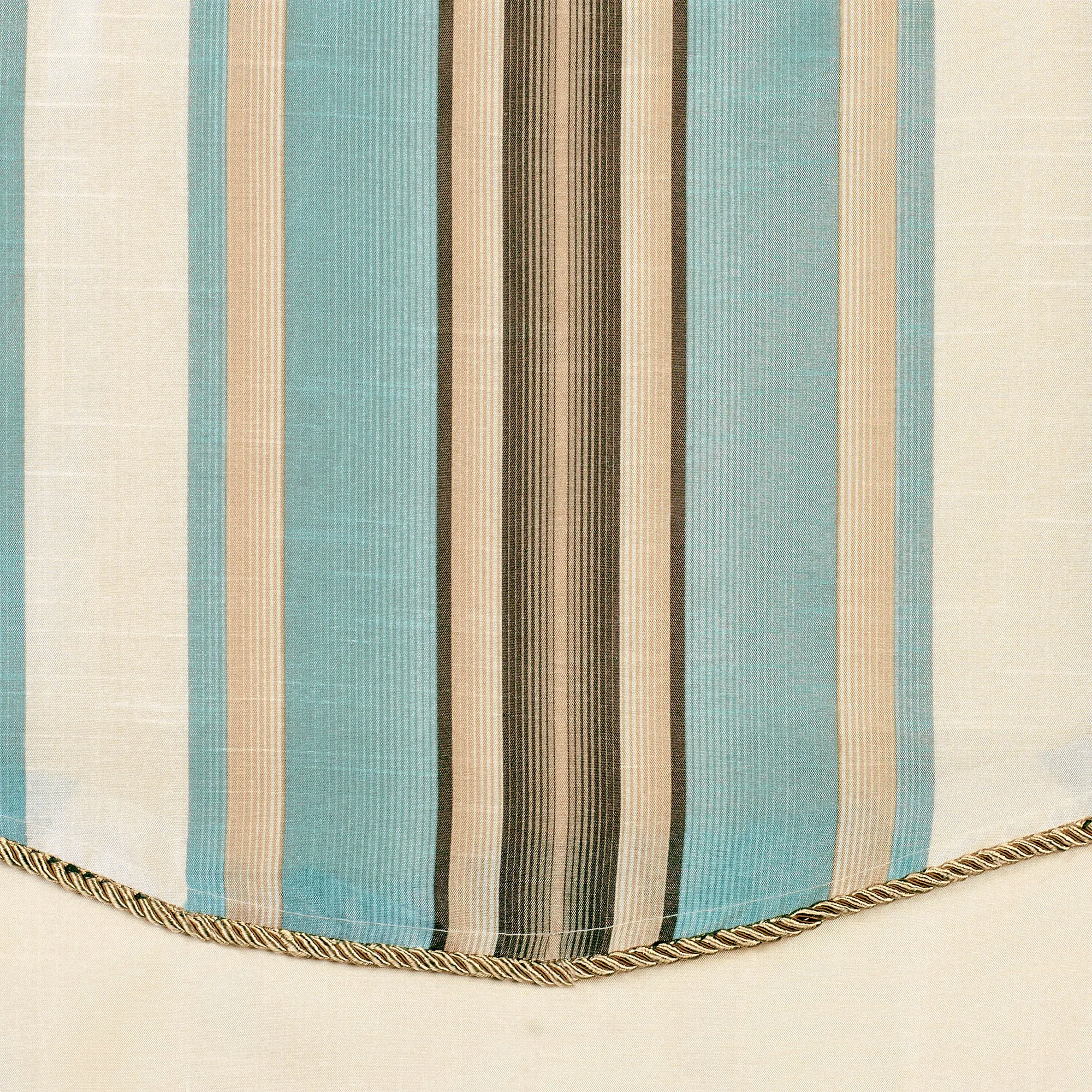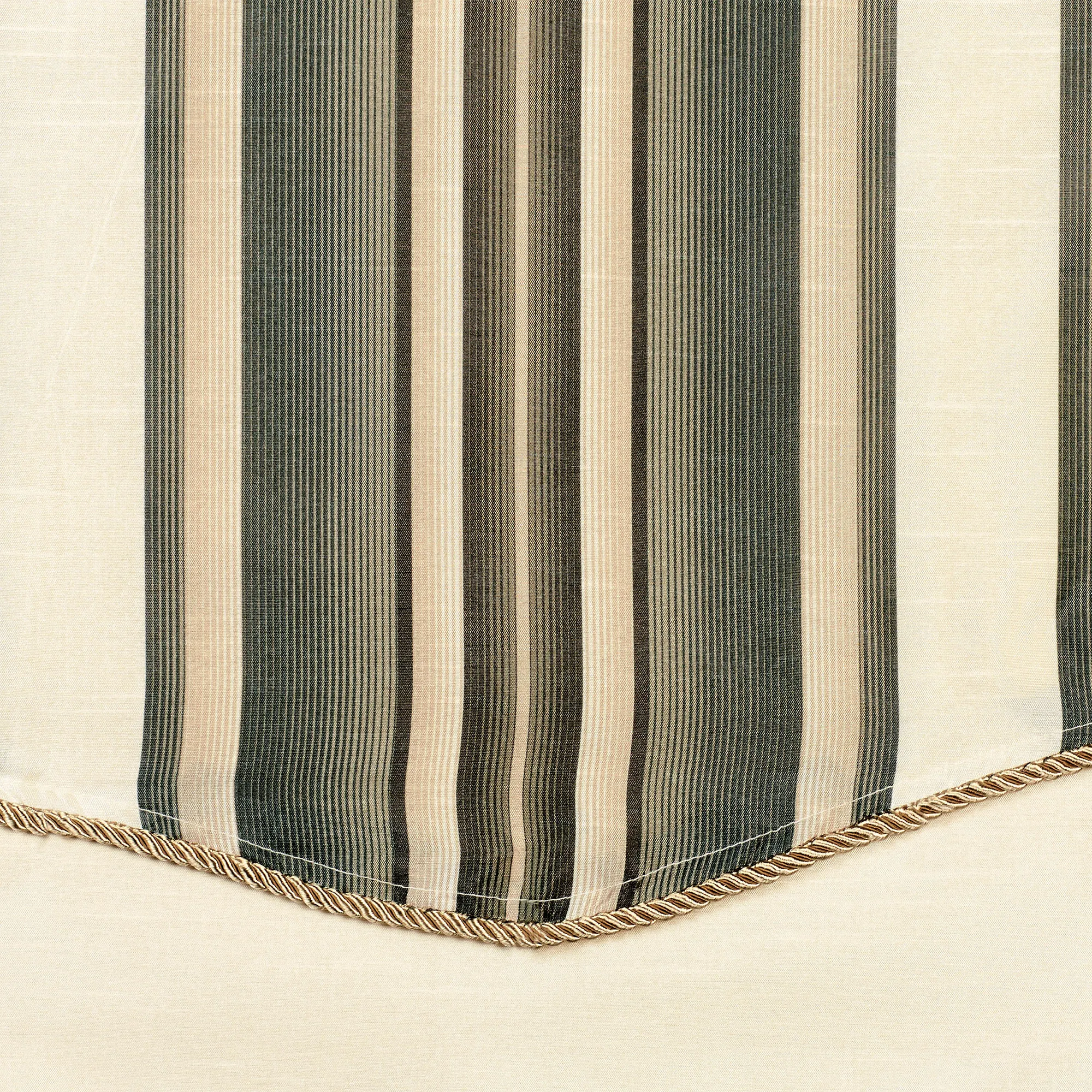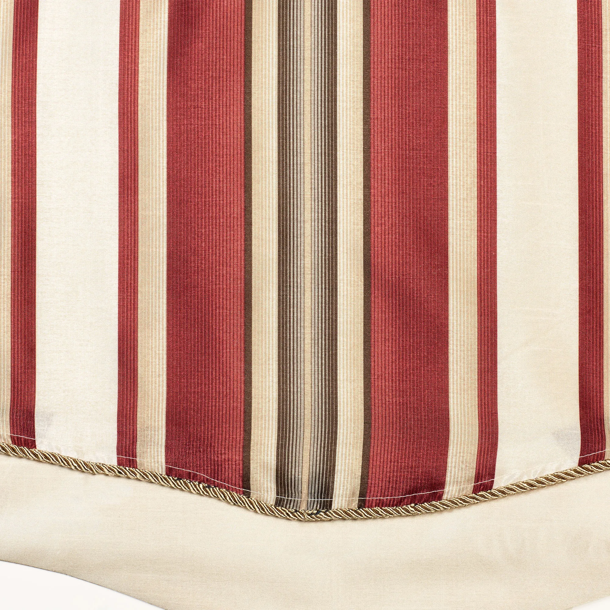 The Maxton Striped Curtain Panel features a vertical stripe design. The lined, polyester window panel has a 3" rod pocket. Panel is tailored; sold individually, each panel measures 52"W. Deep Sage includes colors of light cream, latte, jungle green, and deep sage. Aqua includes colors of light cream, almond, dark brown, light taupe, aqua, and light blue. Scarlet includes colors of light cream, light chocolate, gold, scarlet, and merlot. Machine washable. Imported. The length of each treatment includes the header.