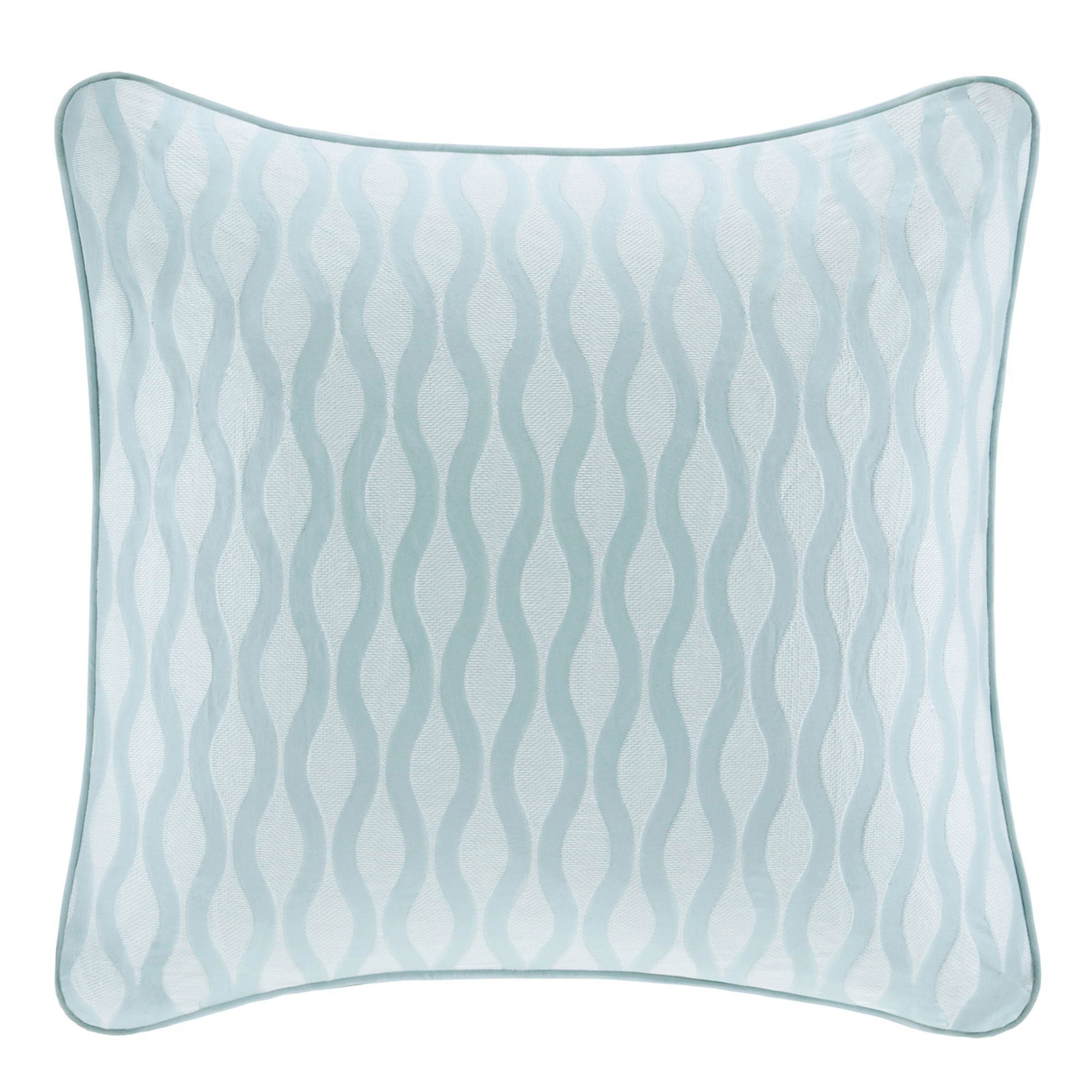 Piped European Sham has an embroidered wave design in white alternating with aqua mist waves; French back closure.