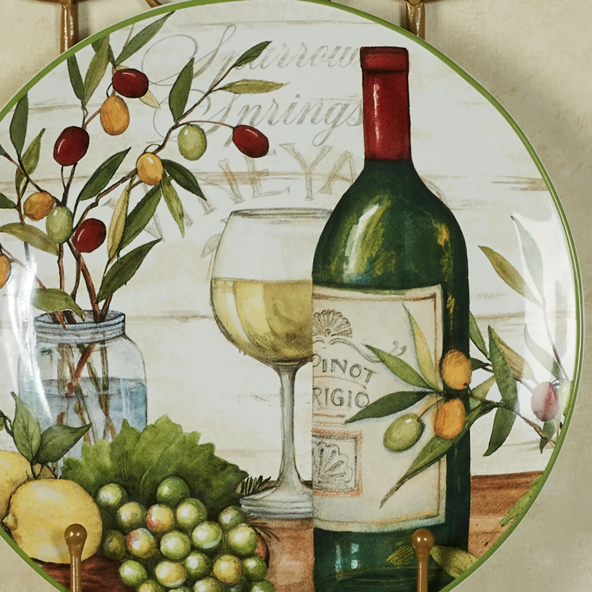 The Meadow Brook Vineyard Dinner Plates are ceramic with decal accents.