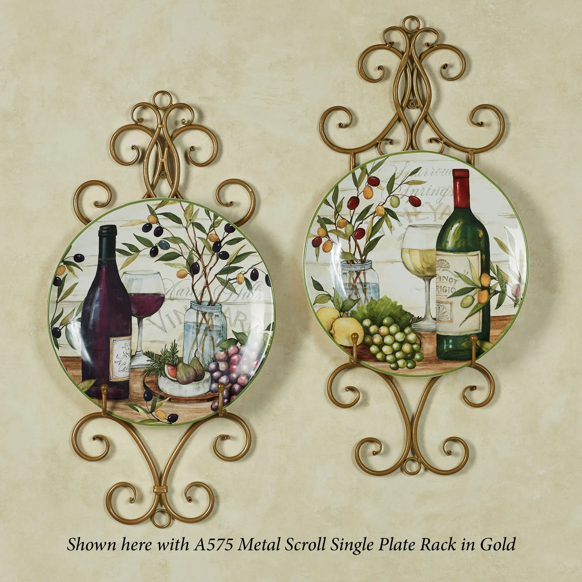 • Shown on the Gold Scroll Single Plate Racks (search A575-001)