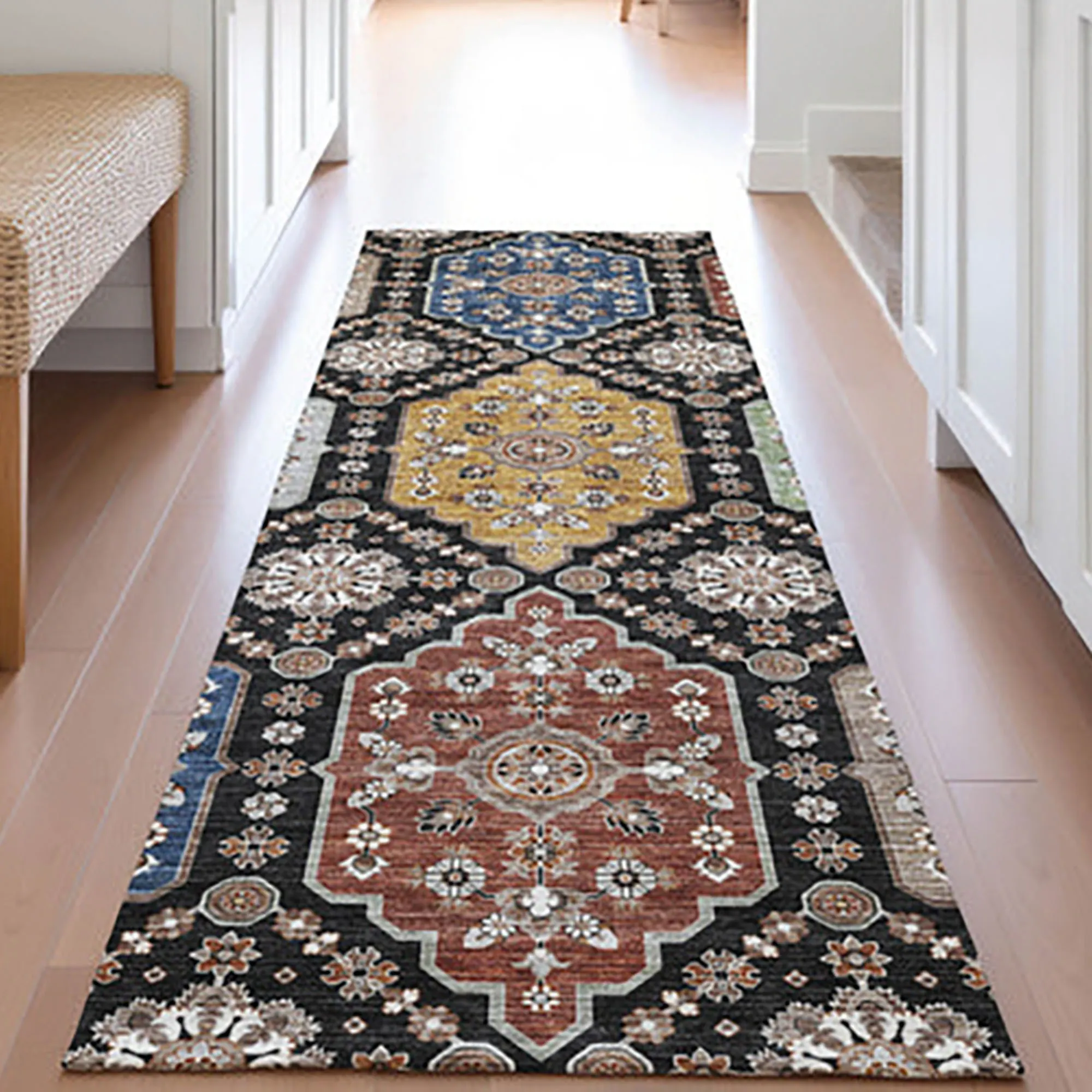 Medallion Muse Black Machine Washable Indoor Outdoor Rugs