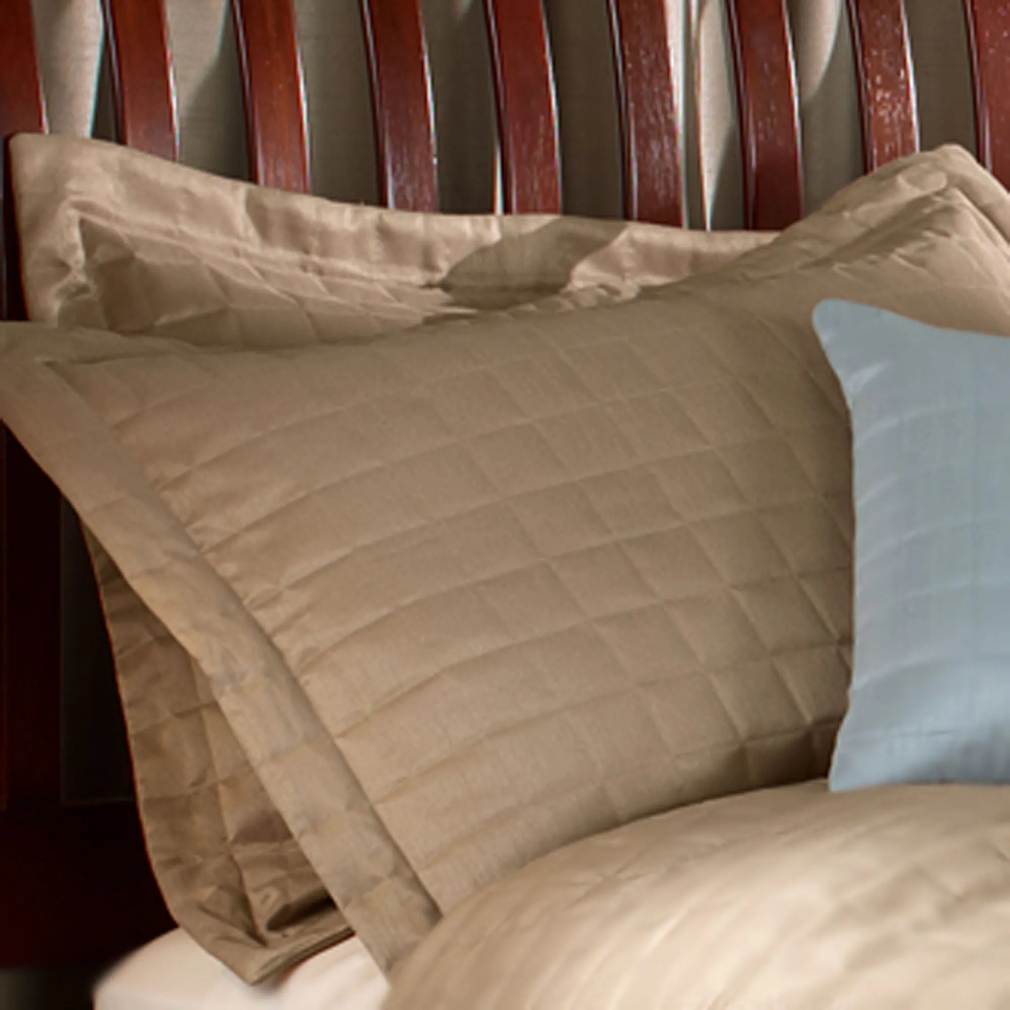 Clean lines and simple style make the Merrell Bedding a natural choice for any modern or classic bedroom. This casual, solid color, polyester bed ensemble features a quilted square pattern. Choose Tan, Loden, Pearl, or Steel Blue.