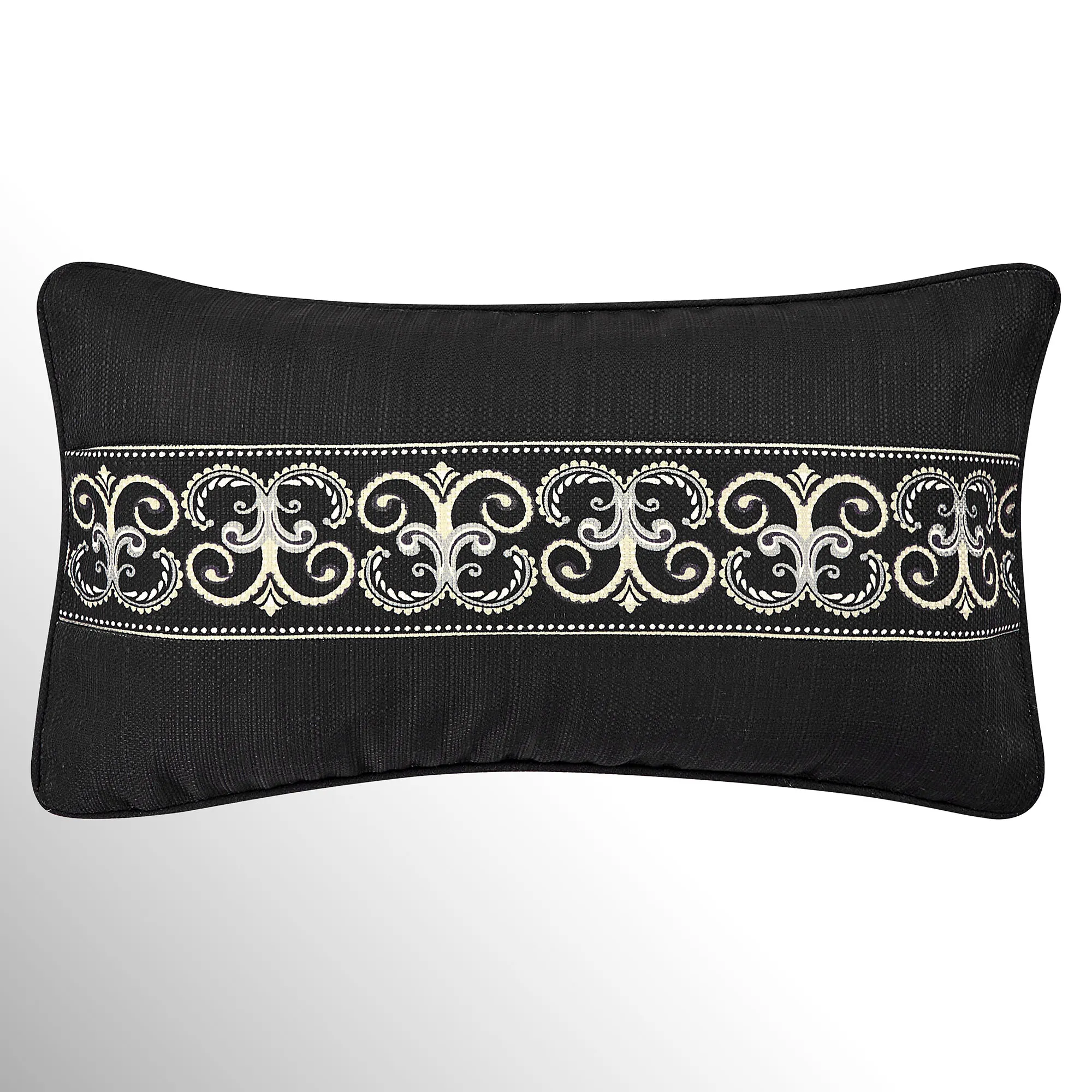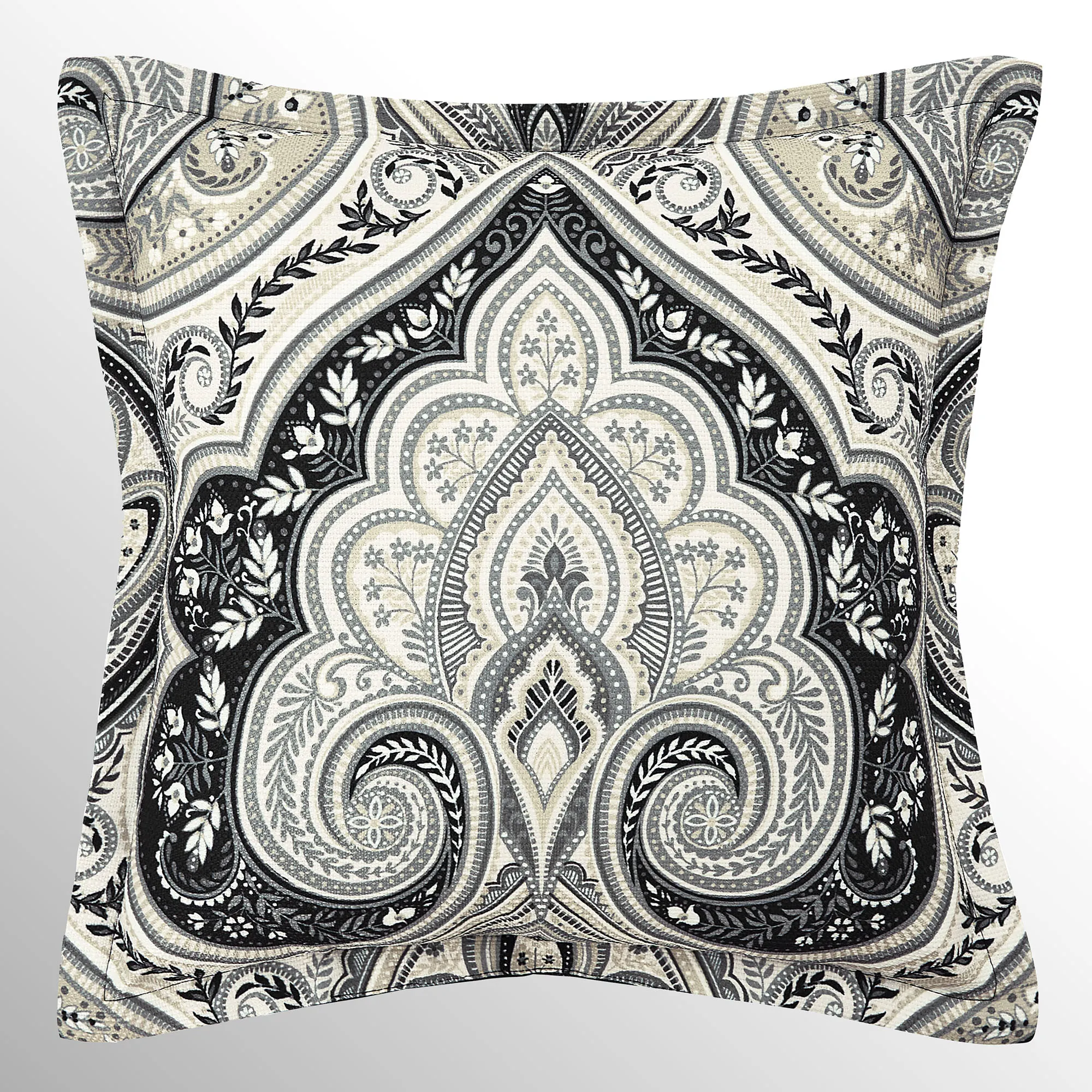 Piped European Sham has a black center framed in scrollwork trim; zipper closure.
