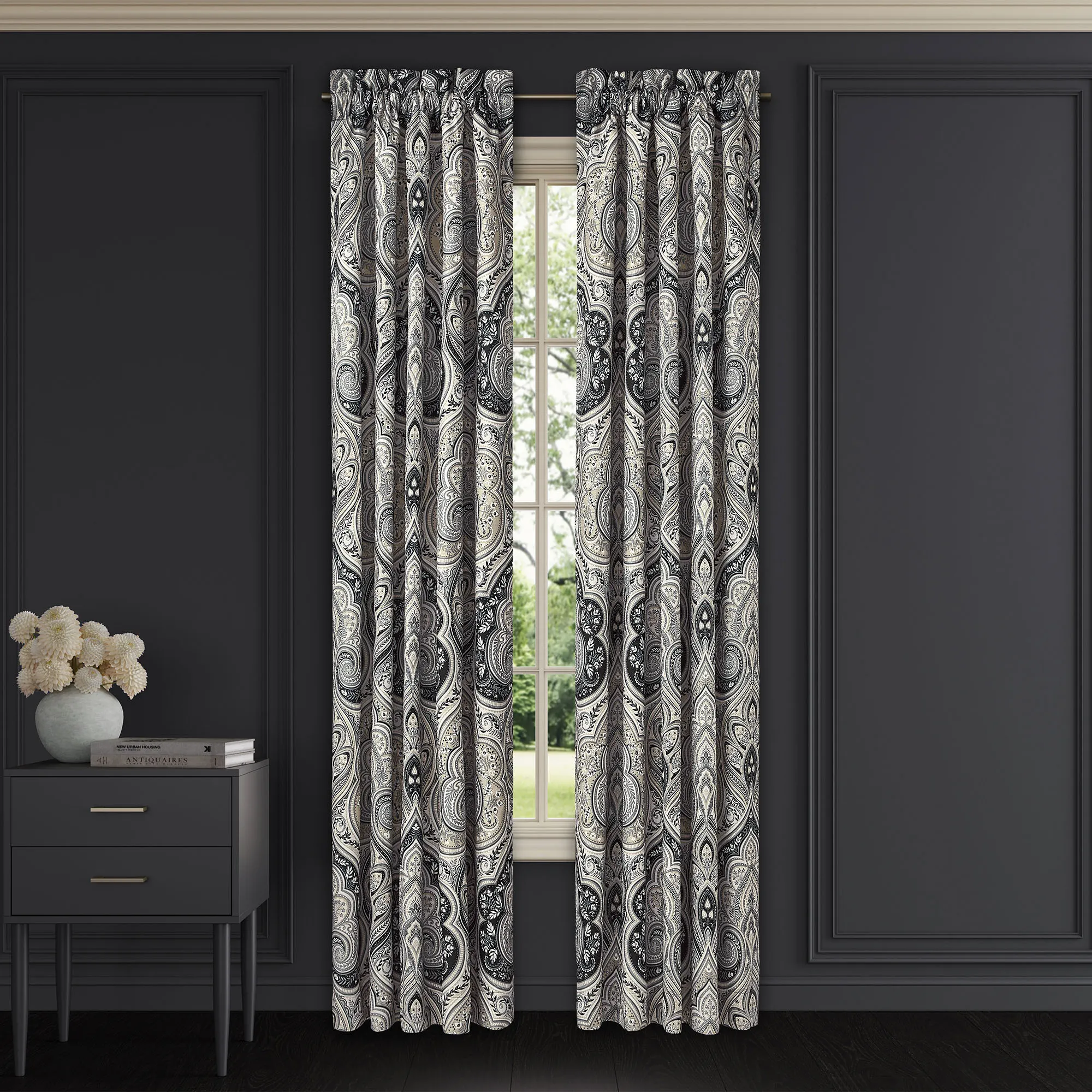 Window Treatment: Wide Curtain Pair has a 3" rod pocket and is 100"Wx84"L. Each Ascot Valance has a 3.25" rod pocket and is 40"Wx21"L.