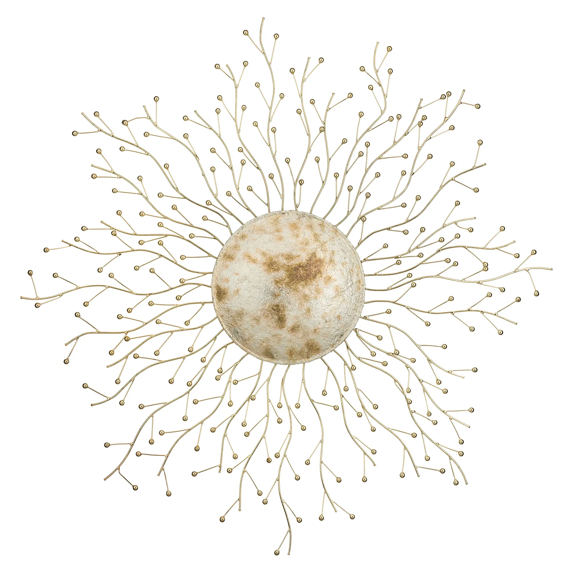 Metallic Burst Gold and Silver Branching Sun Indoor Outdoor Metal Wall Art Sculpture