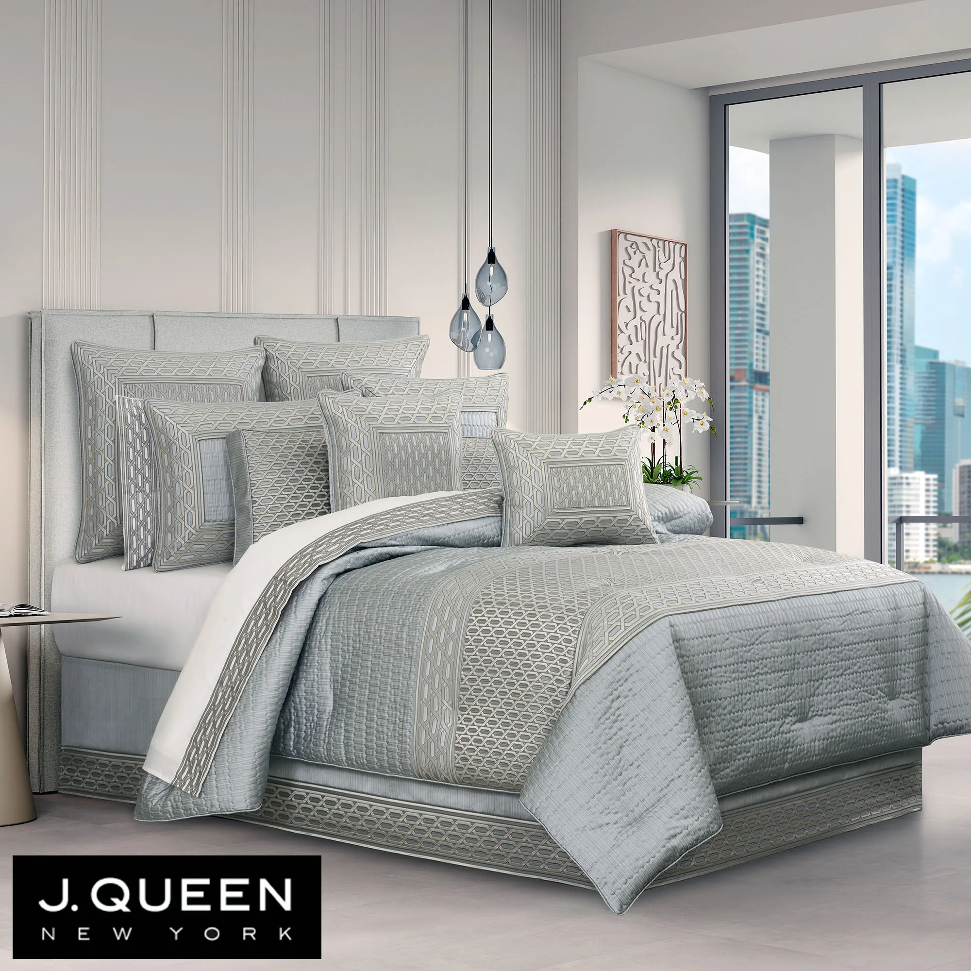 Metropolitan Blue and Silver Modern Comforter Set Luxury Bedding by J Queen New York