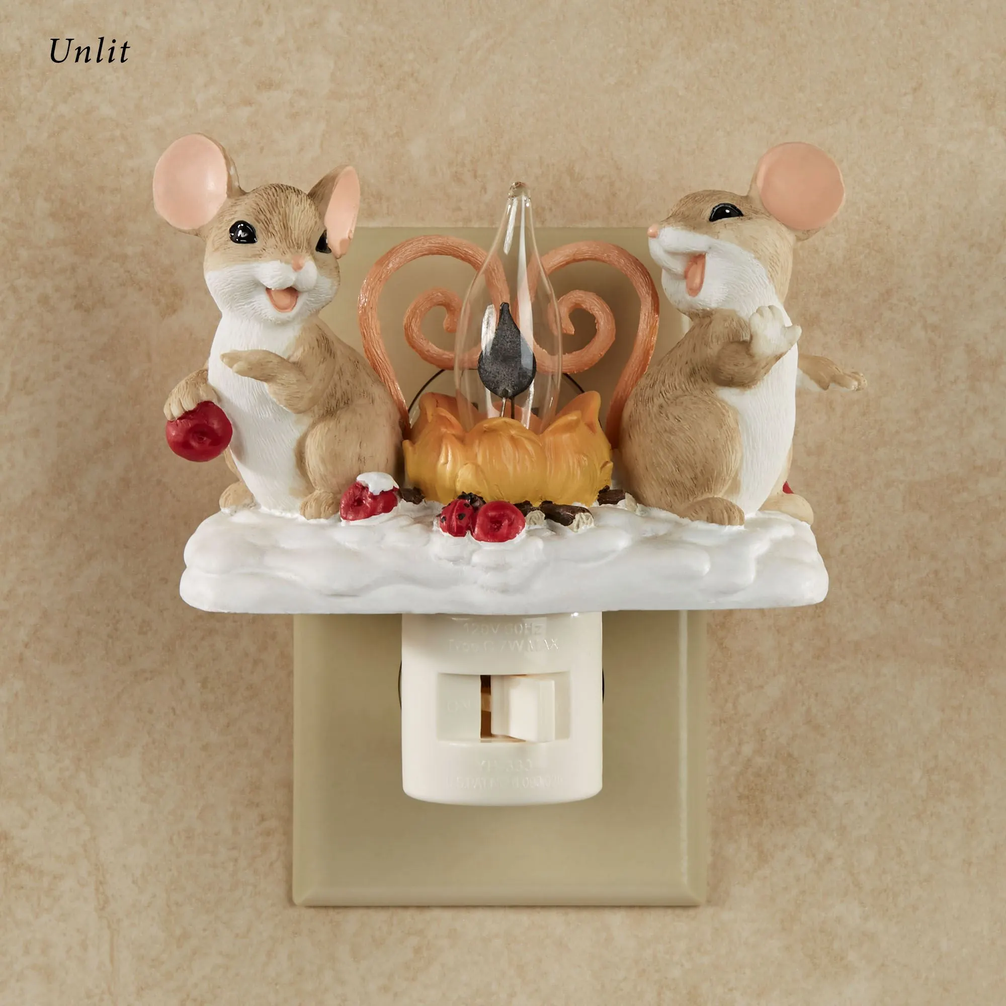 Charming Tails Mice by the Fire Flickering Winter Nightlight by Roman