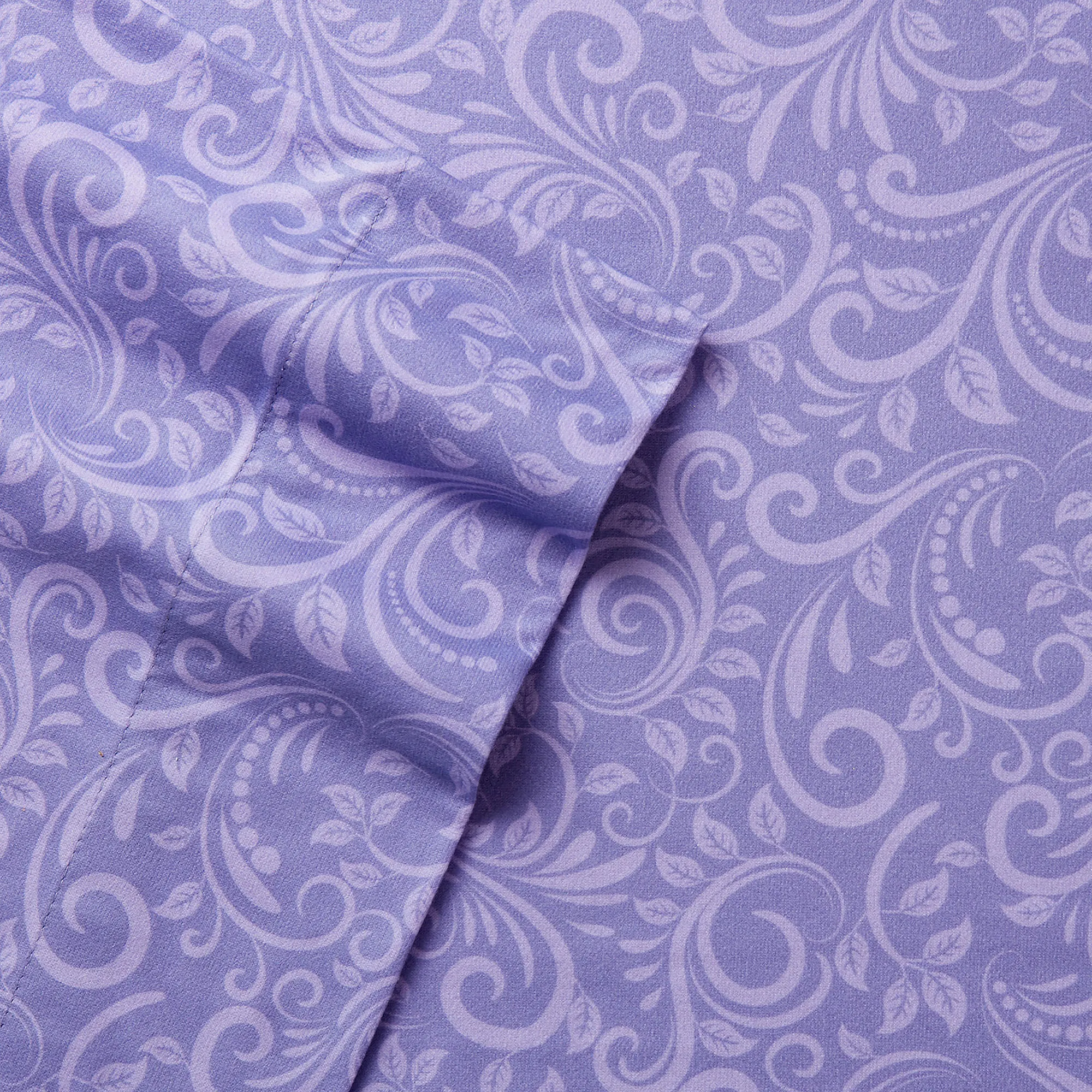 Stay warm with the soft and luxurious Micro Flannel(R) Traditions Sheet Set. These lilac polyester sheets have printed scroll and leaf designs. These colorfast sheets will always fit, will not shrink or pill, and are wrinkle-, fade-, and bleed-resistant. The fitted sheet has elastic all around. The Twin size has a 14" pocket, the Full size has a 16" pocket, and the Queen, King, and Cal King sizes have an 18" pocket. Sheet set includes flat sheet, fitted sheet, and pillowcase(s). Machine washable. Imported.