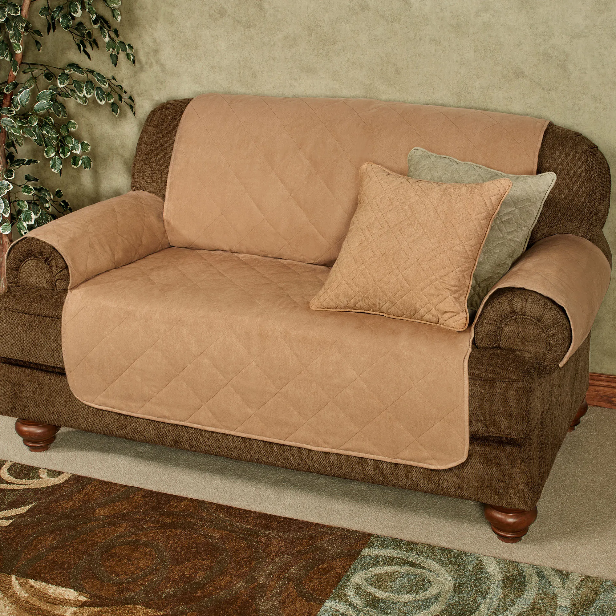 The diamond-quilted, microfiber polyester faux suede Mason Furniture Protectors will protect your furniture and keep it looking fresh and new. One-piece styling drapes easily over the seat, back, and arms, protecting furniture from pets, stains, and more. Backing is polypropylene. Choose Sofa Cover, Loveseat Cover, Chair Cover, Recliner/Wing Chair Cover, or Extra-Long Sofa Cover. Fill is polyester. Machine washable. Imported.