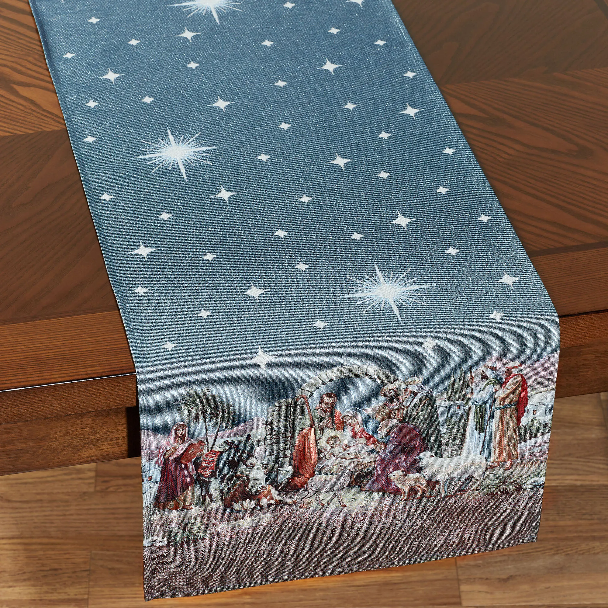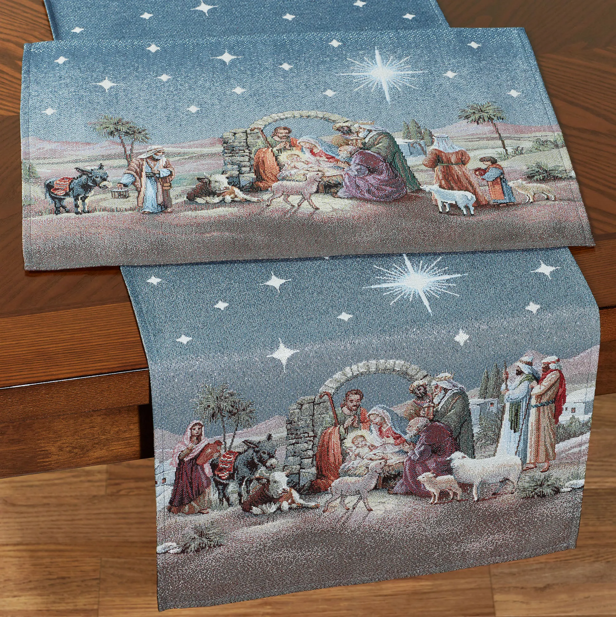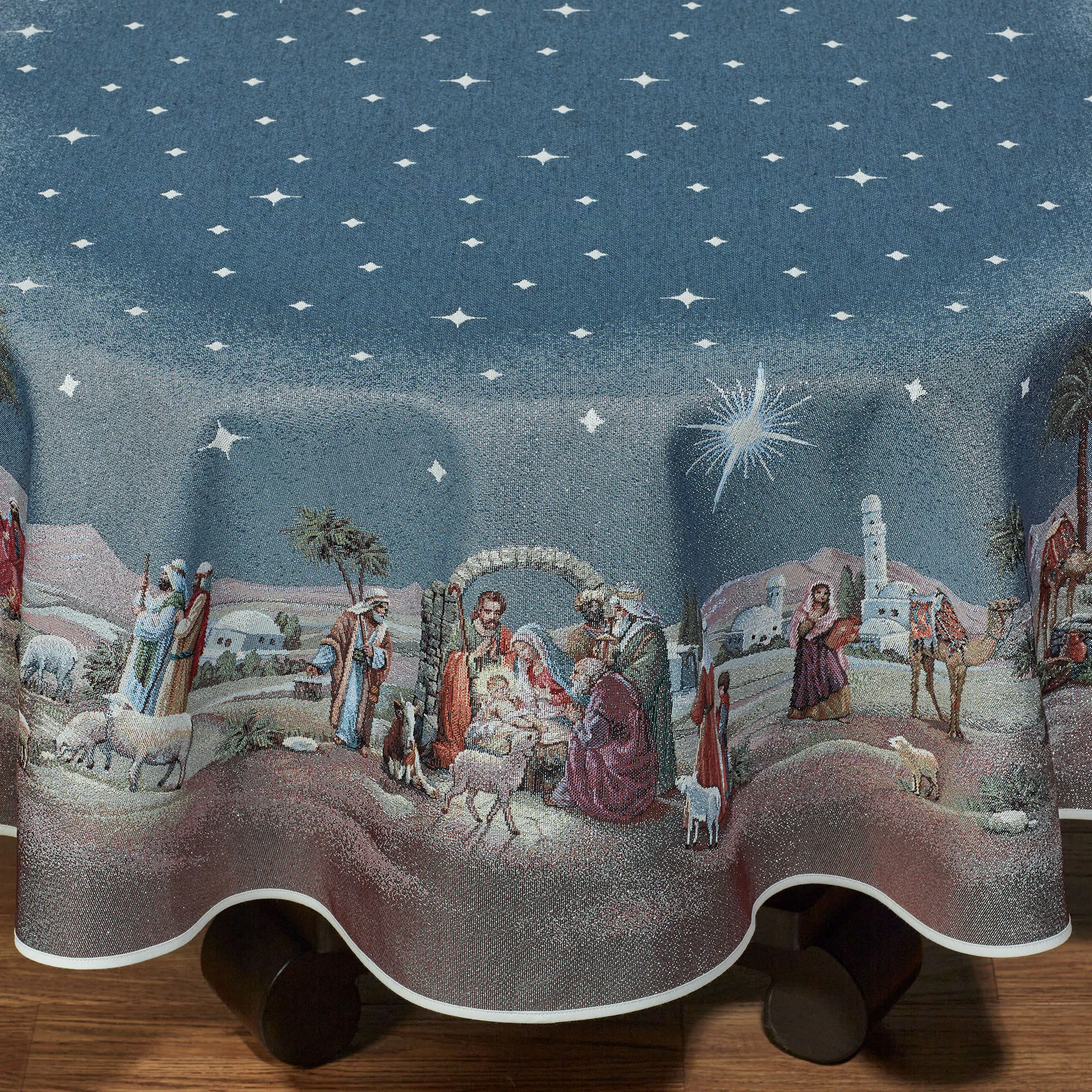 Midnight Clear Nativity Religious Christmas Woven Table Linens