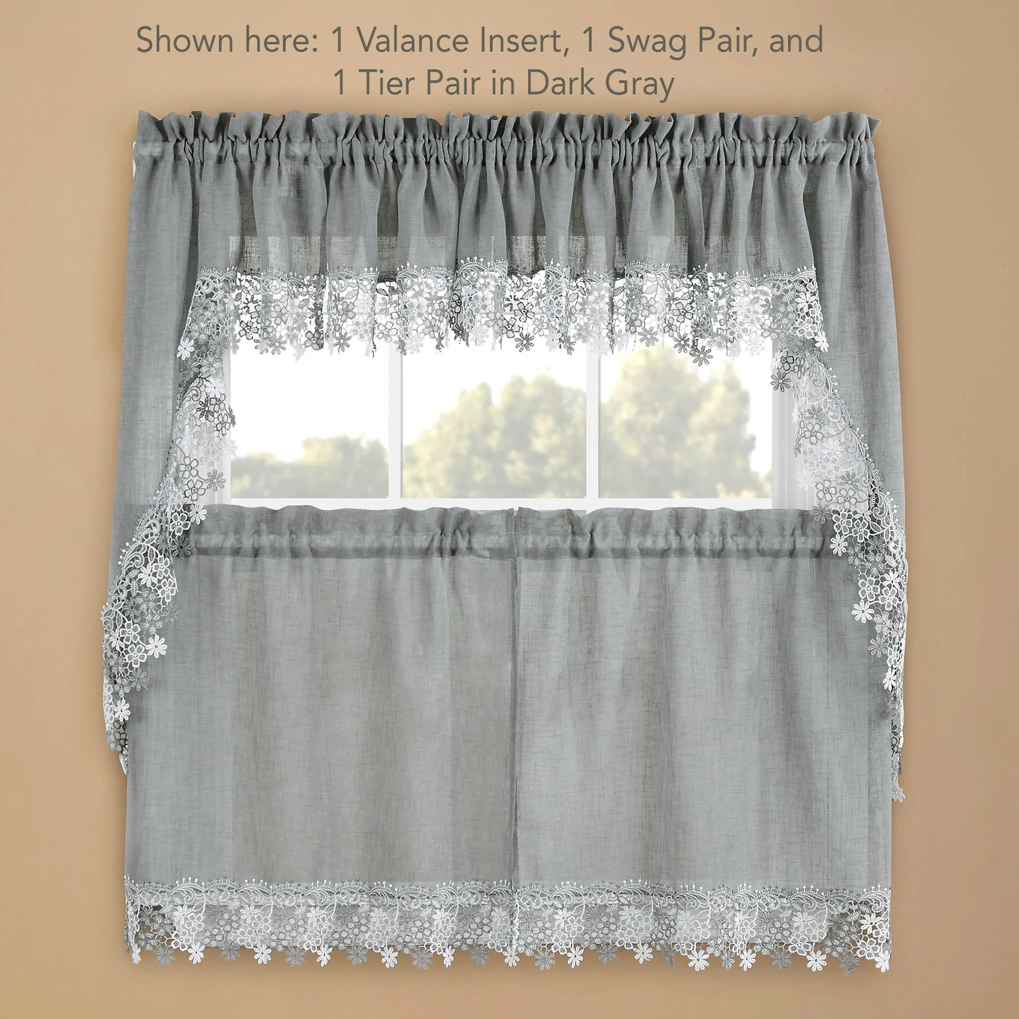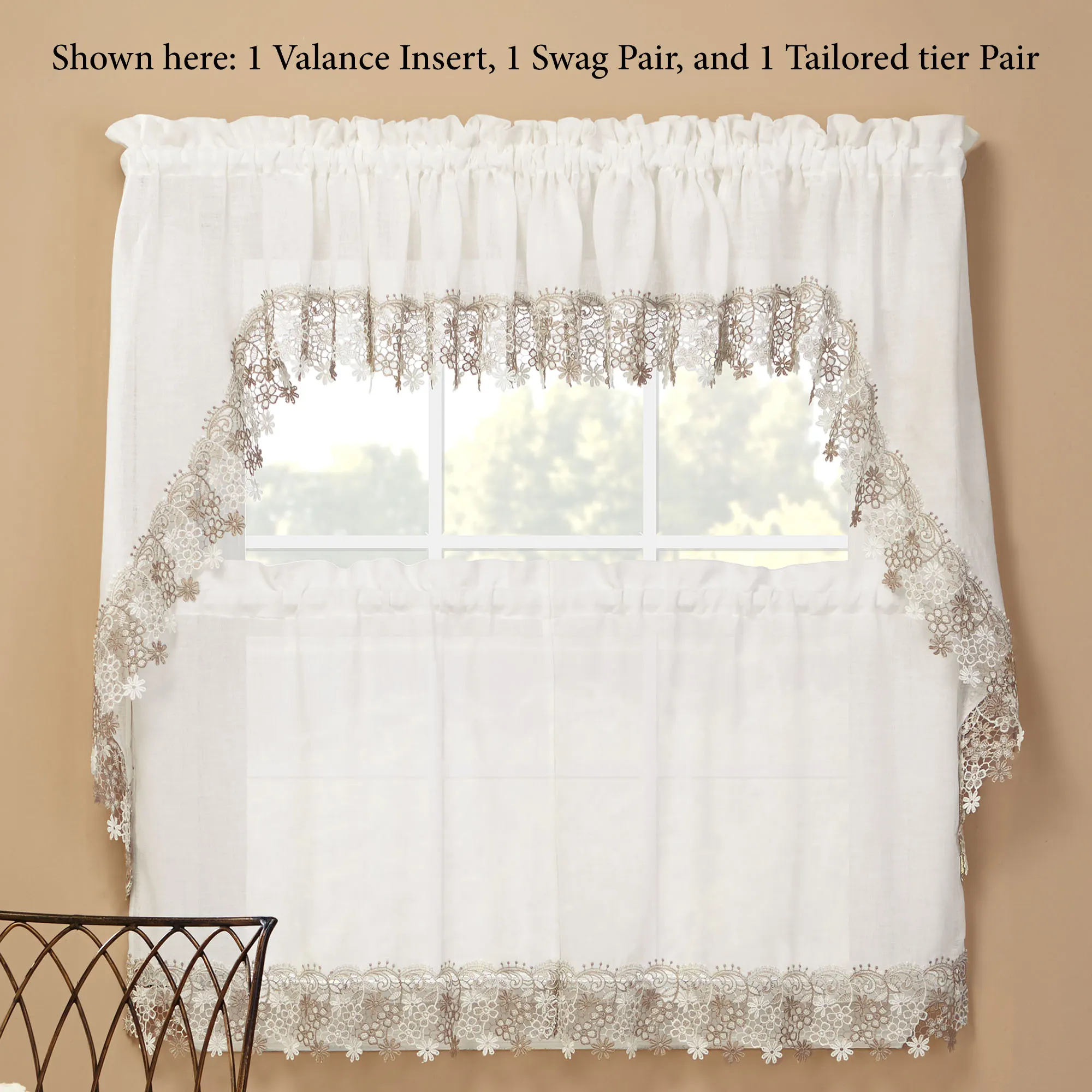 • Shown: 1 Swag Pair & 1 Insert Valance over 1 Tier Pair