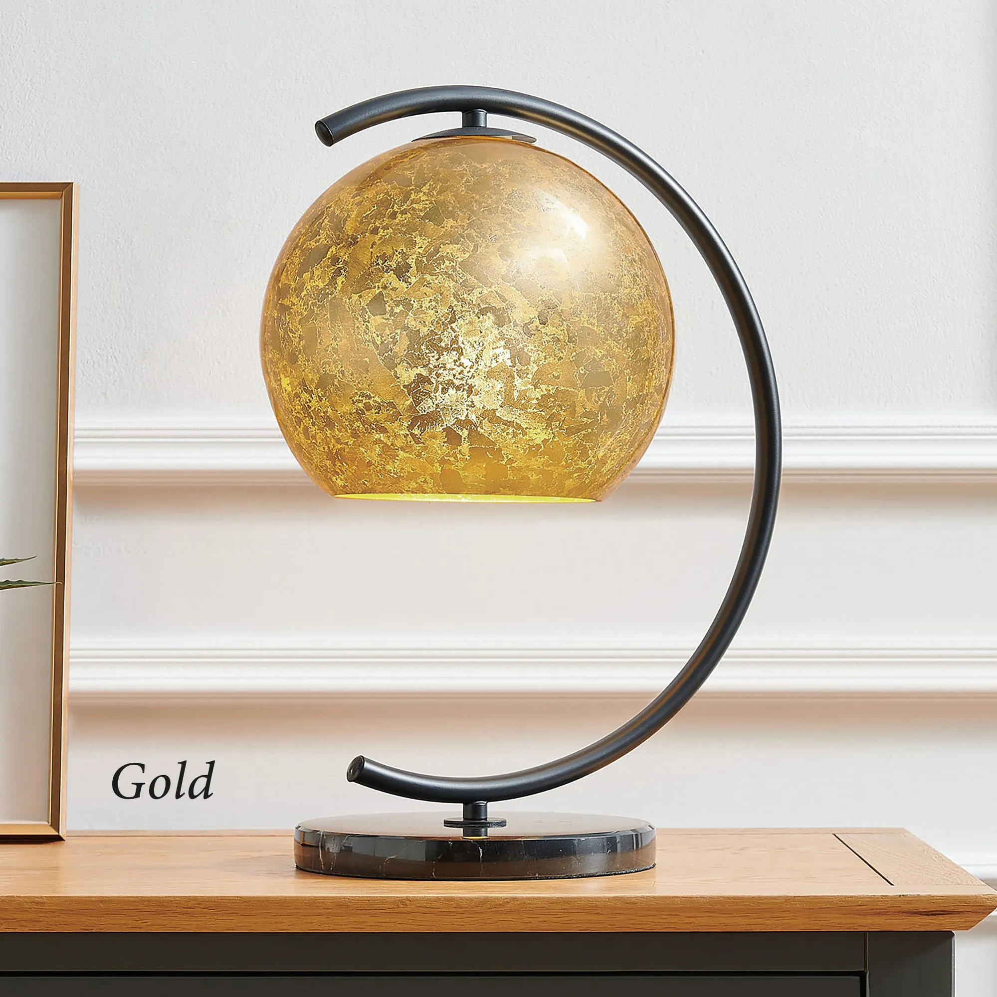 Molina Curved Table Lamp with Silver or Gold Metallic Foil Art Glass Globe Shade