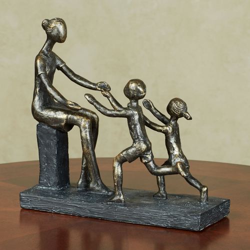 These children cannot wait to be wrapped in Momma's Embrace. Made of resin, this table sculpture features a mother and children with a bronze finish and gold accents. The seat is black, and the mounting base has a gray wash. Measures 9.5"Wx3.5"Dx9"H.