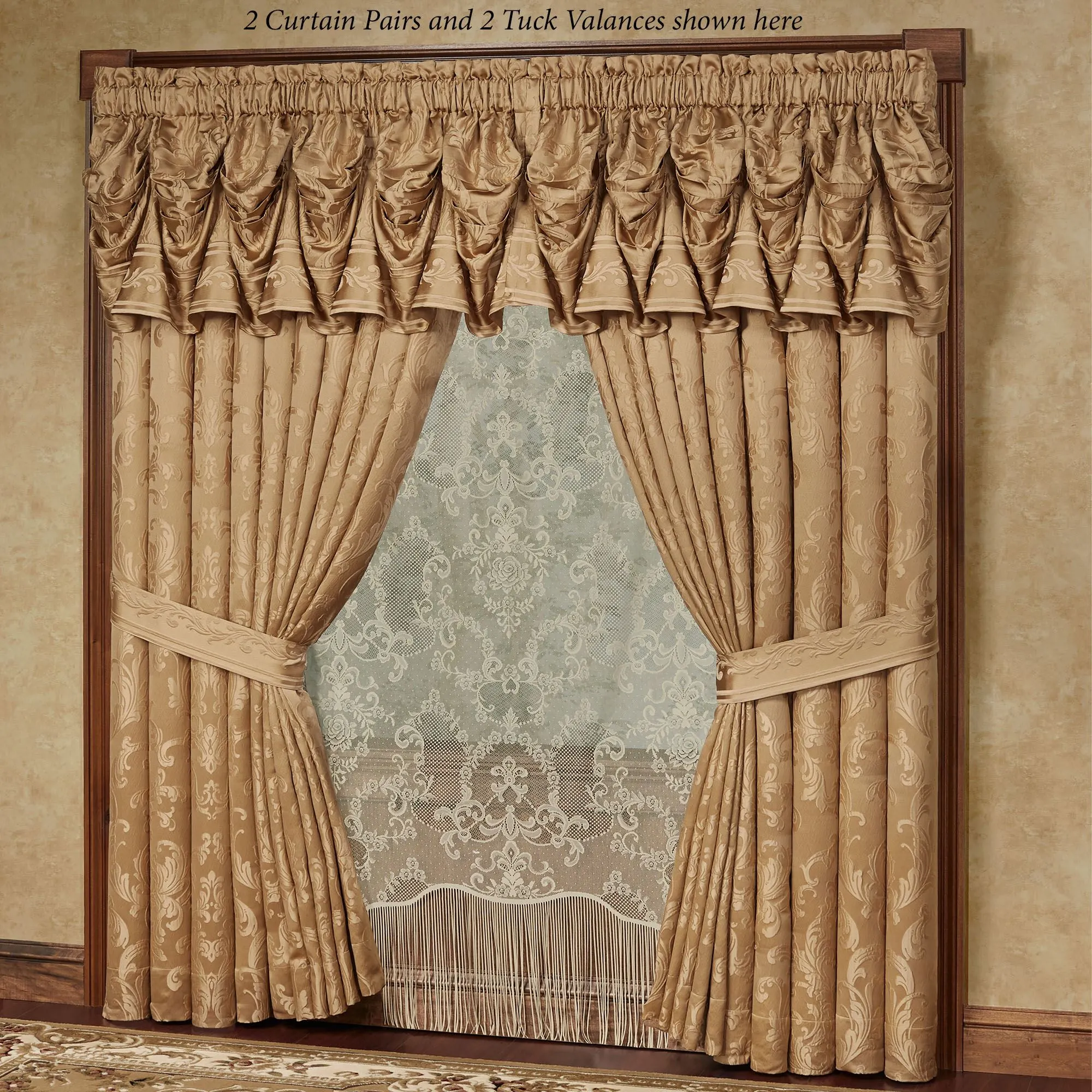 • Shown: 2 Wide Curtain Pairs & 2 Tuck Valances