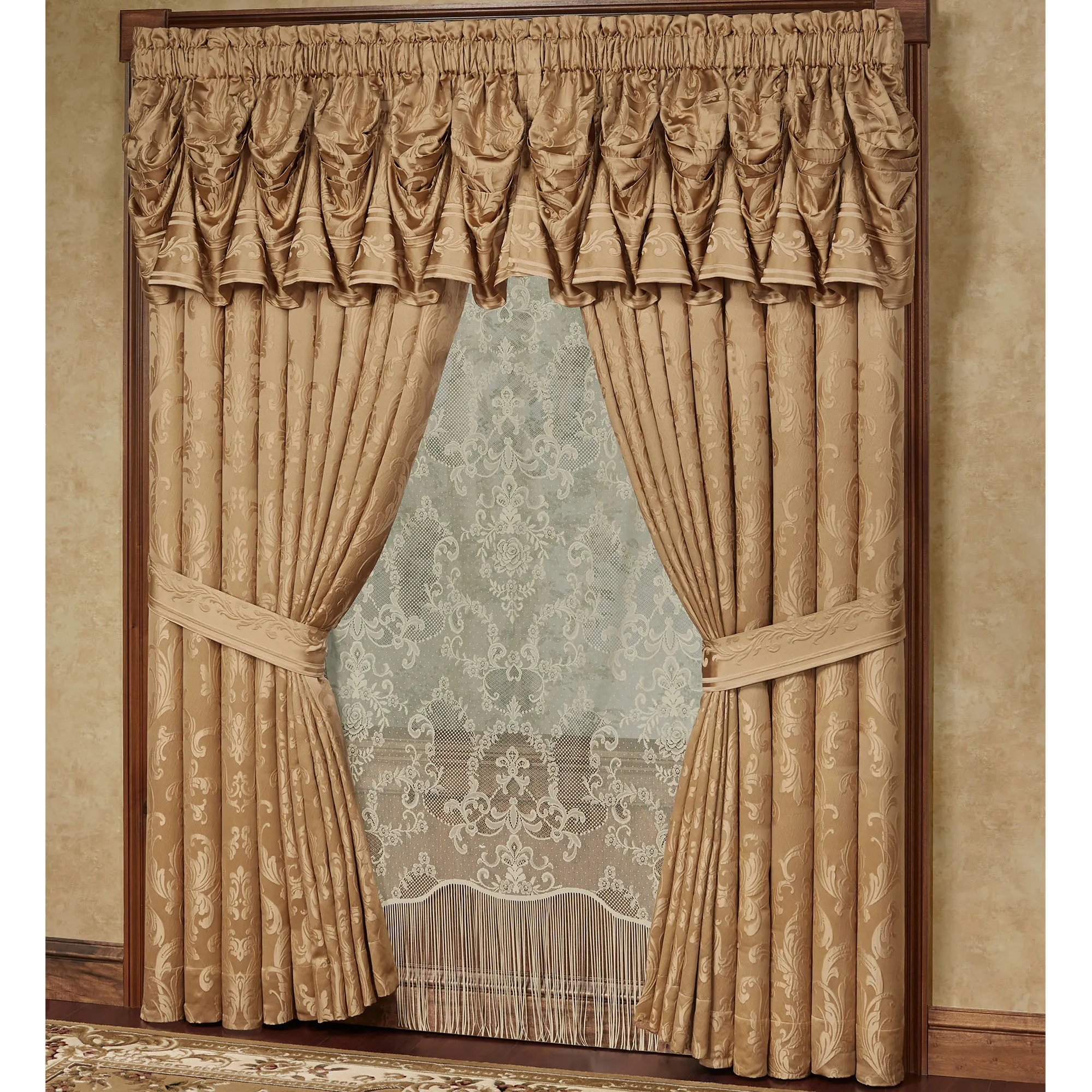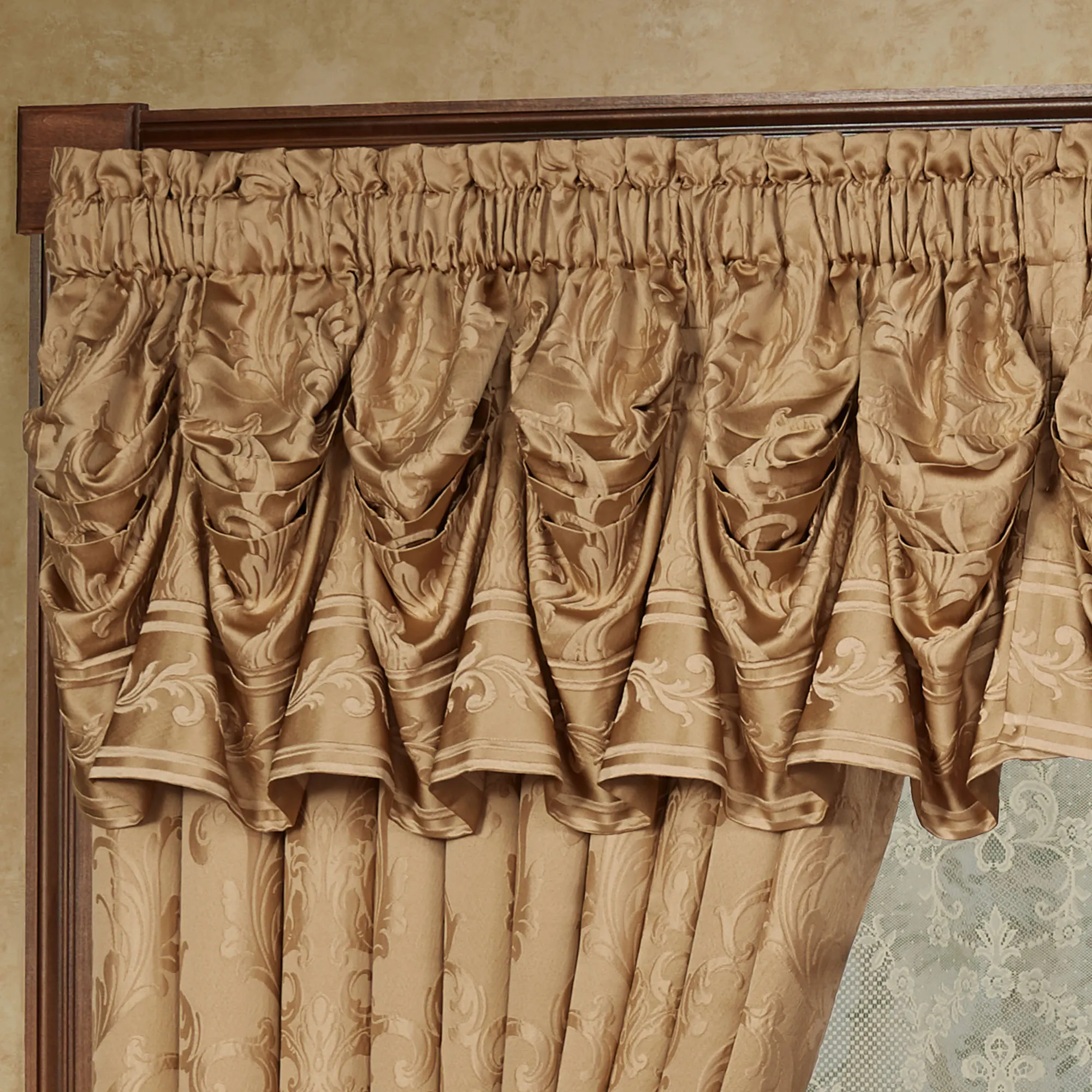Monaco Gold Damask Tuck Valance Window Treatment