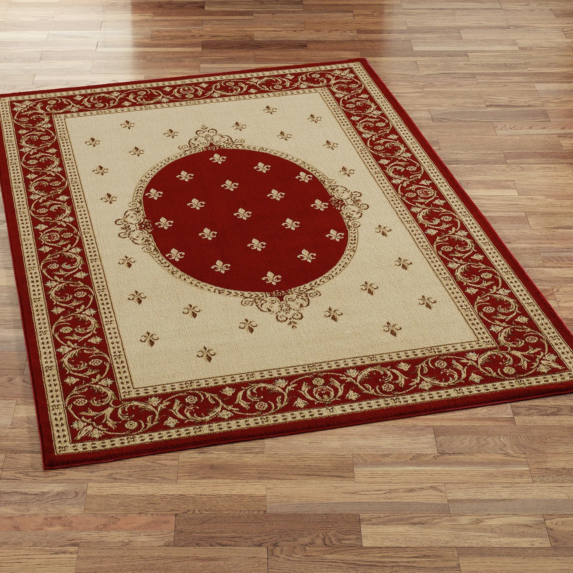 The Monarch Medallion Area Rugs have a stately, traditional design that grants them a palatial splendor. Machine-made from polypropylene, these .375" thick area rugs feature a central medallion design with scrolled accents against a solid, central field. A pattern of fleur-de-lis motifs covers the central field; the border features leafy scrollwork. We recommend professional cleaning by a rug cleaner. Imported.