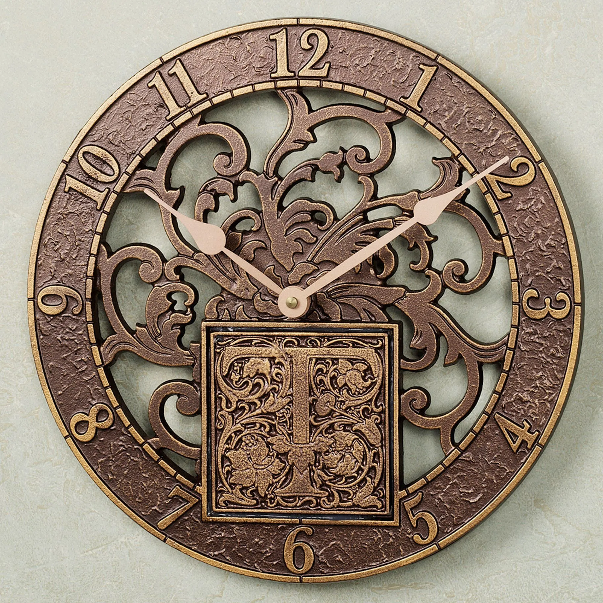 The Monogram Indoor/Outdoor Wall Clock is the perfect way to keep time. Crafted from eco-friendly, rust-free, recycled metal, this wall clock features an openwork scroll design and a square tile for your initial. The clock runs on two included AA batteries and is finished in antique copper. Specify one initial only in the Initial field, or type "Generic" for the flower tile design. 12" dia.