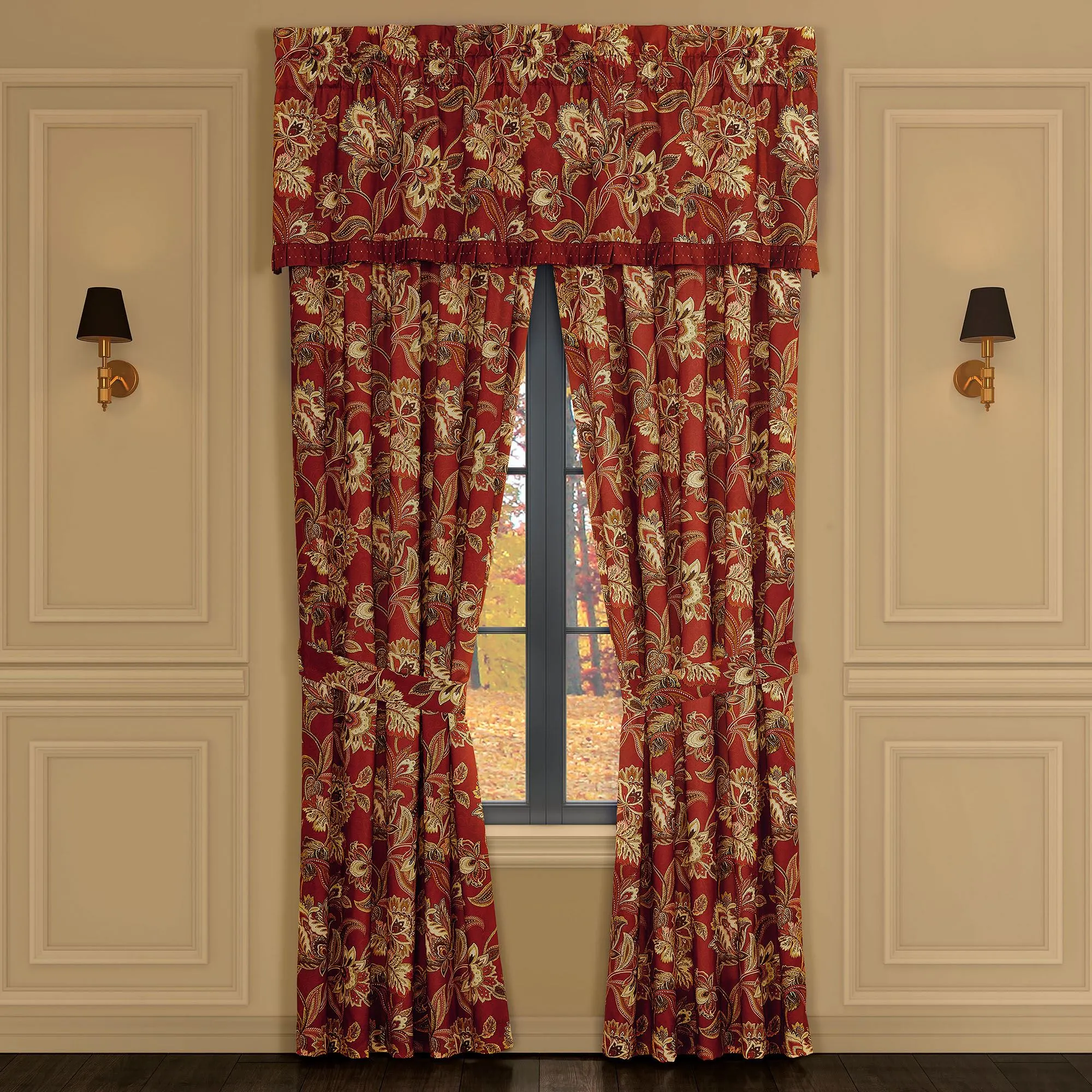 Montecito II Merlot Jacobean Floral Window Treatment from Royal Court