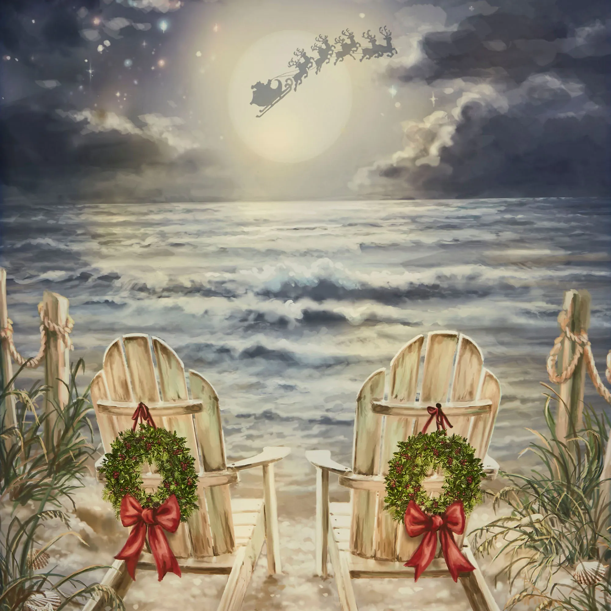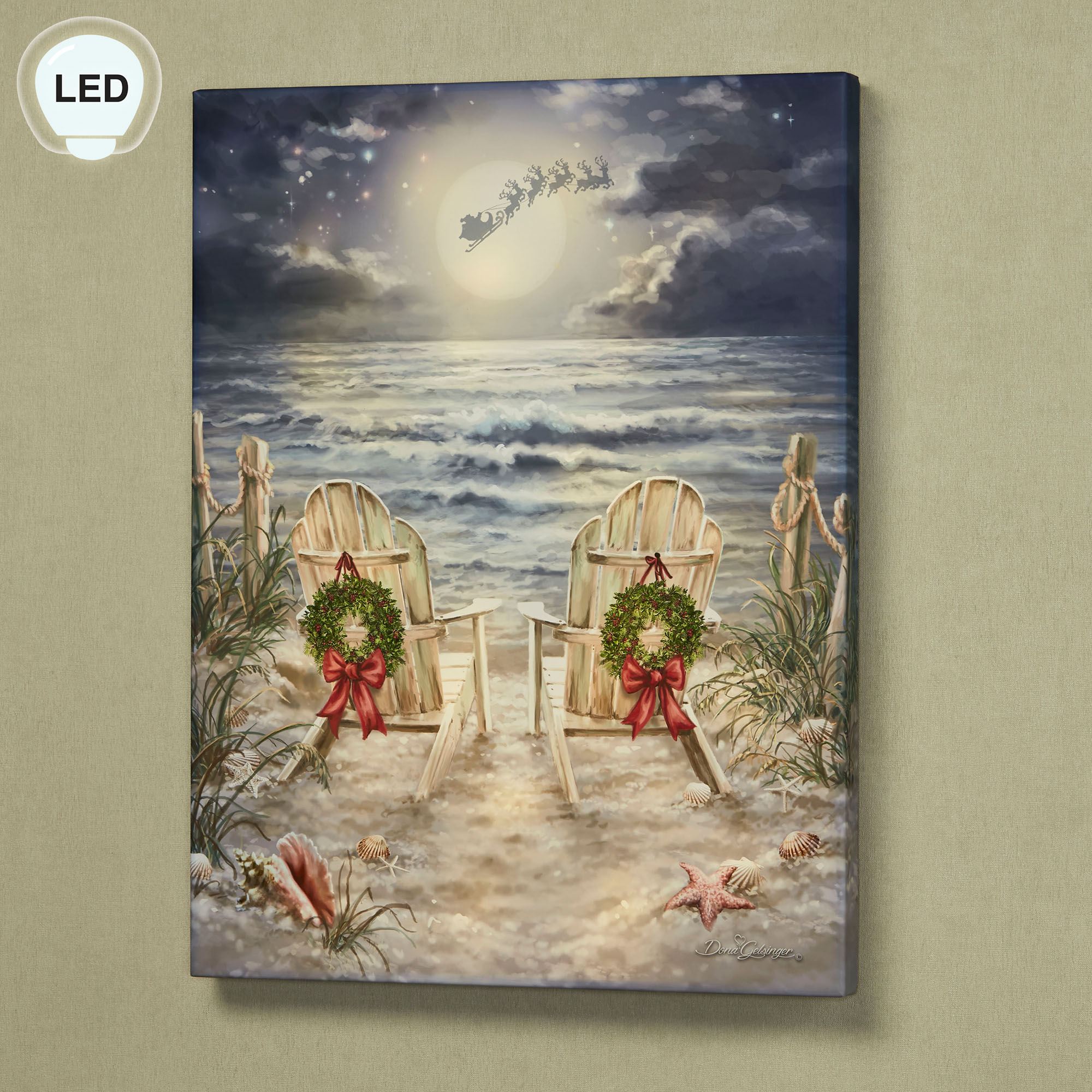 Dona Gelsinger Coastal Moonlight Christmas at the Beach LED Lighted Wall Art by Glow Decor