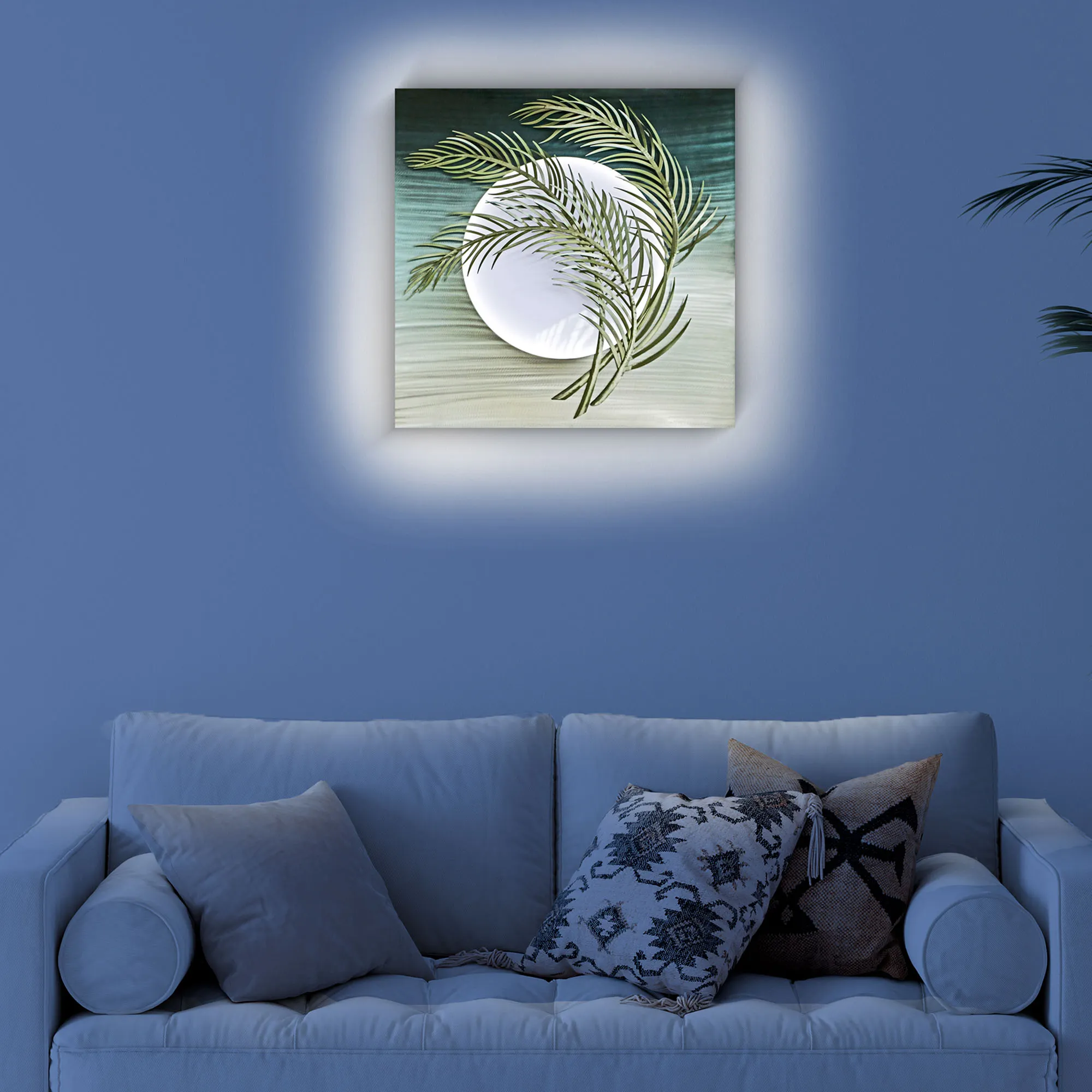 Moonlight Palms LED Lighted Stainless Steel Wall Art