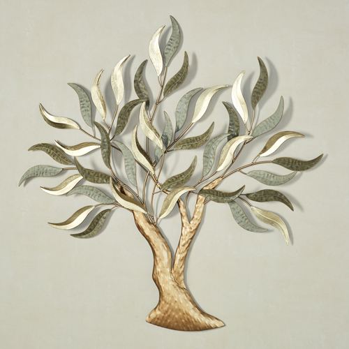 Morning Mist Sage and Gold Tree Metal Wall Art