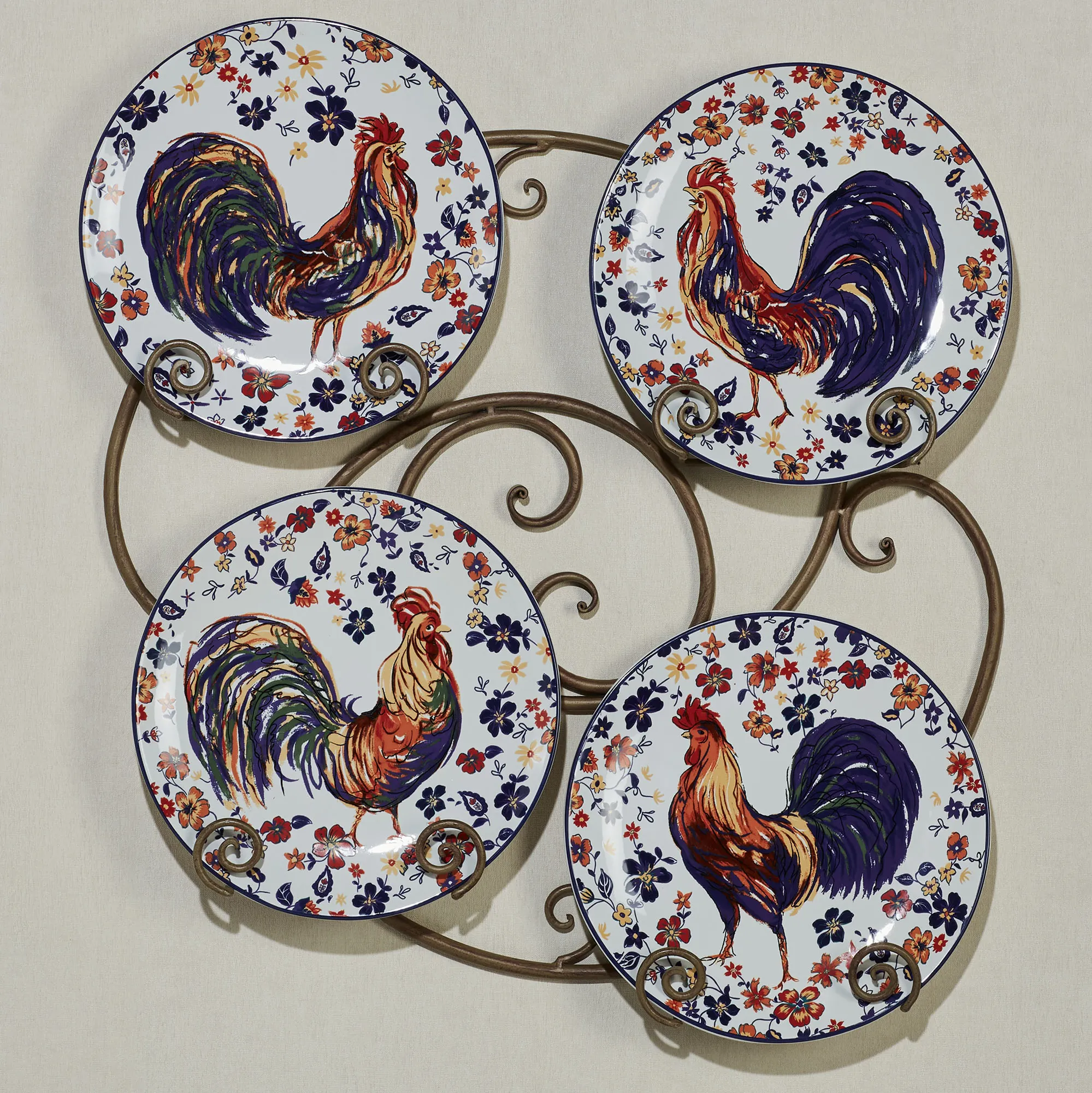 • Set of Four rooster plates (one of each)