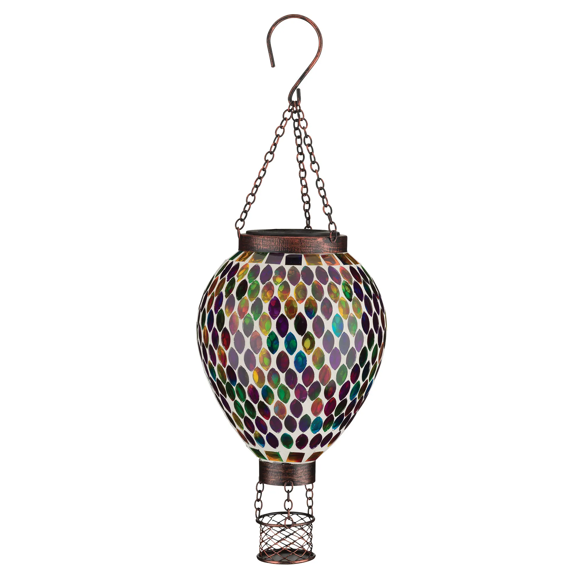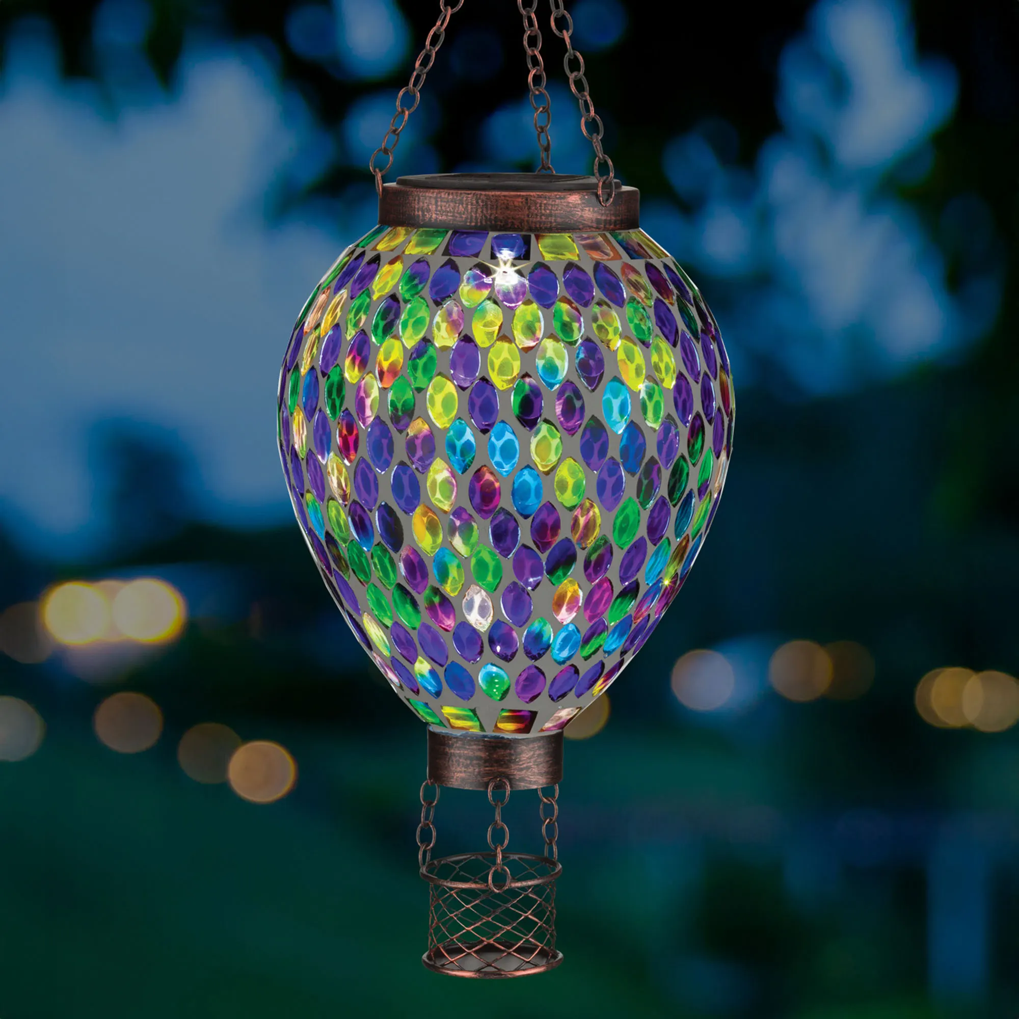 Multicolored Mosaic Glass Tile Hot Air Balloon Outdoor Hanging Solar LED Lantern