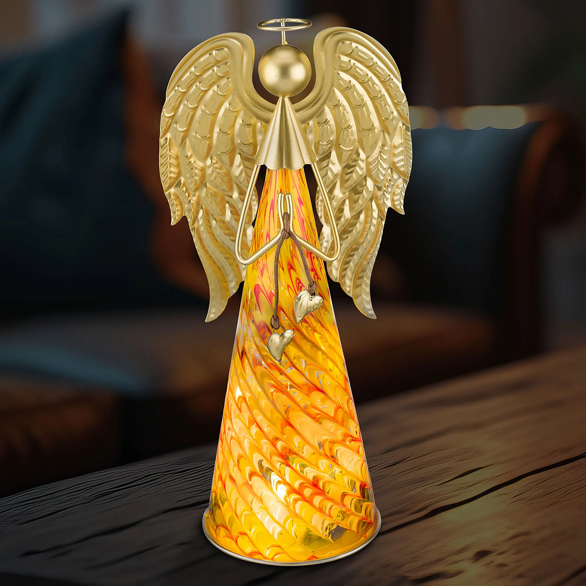 Gold Murano Style Glass LED Lighted Angel Figurine