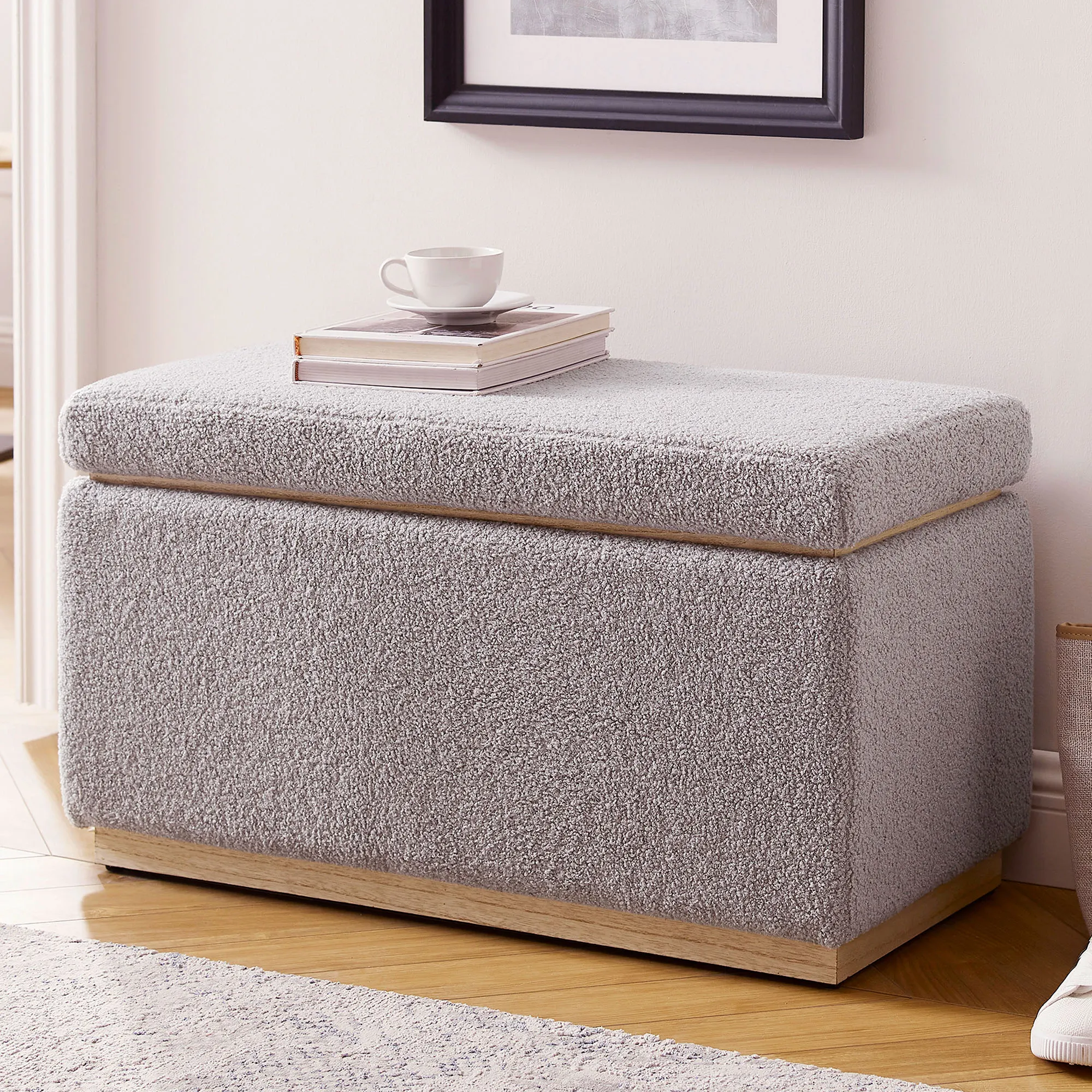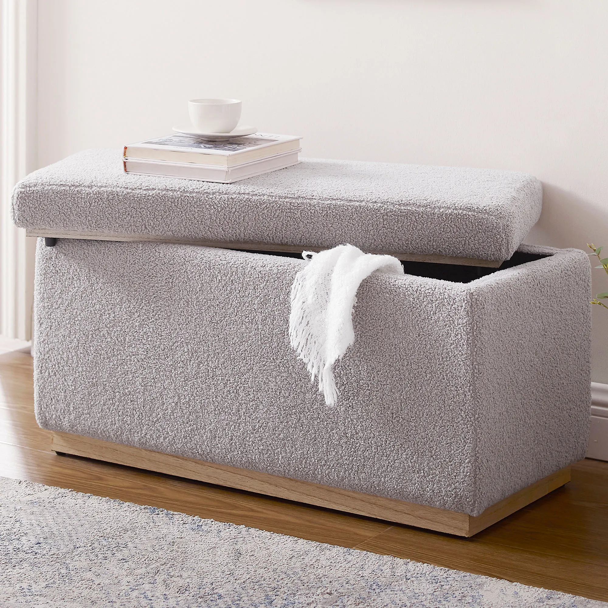 Mya Gray Boucle Upholstered Rectangle Storage Bench