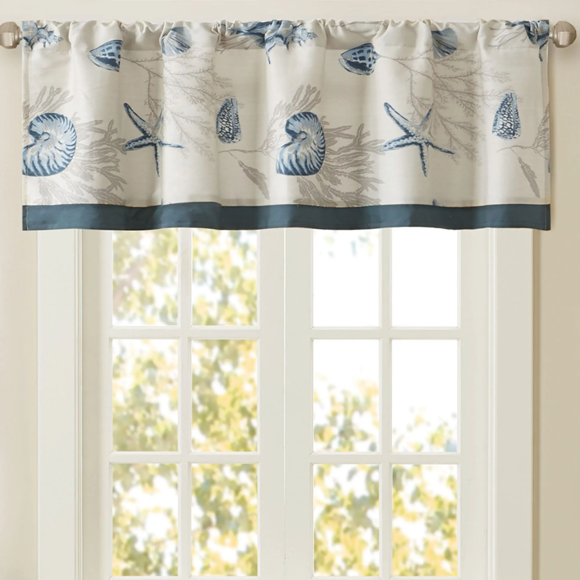 Sold separately: Valance has sea life and a blue band at the bottom. Rod pocket is 1.25".