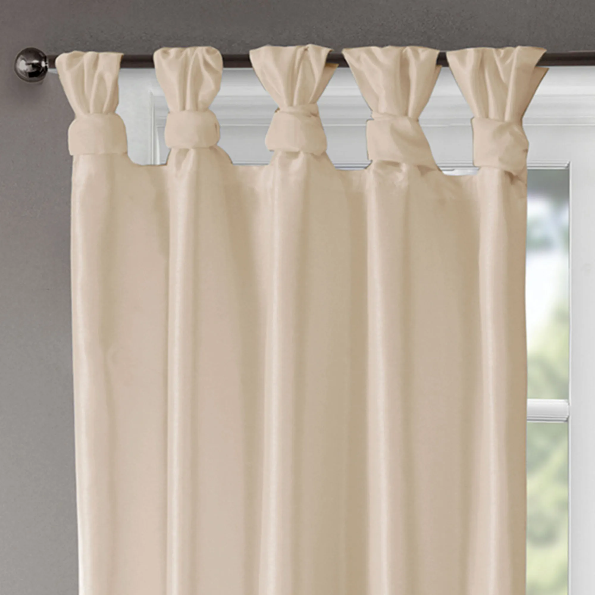 Enhance the look of any window with the Natalia Tab-Top Curtain Panel. This elegant, lined faux silk polyester panel features DIY twisted tab tops that create rich, deep folds for a professional look. Easy-to-hang, solid color panel fits up to a 2" dia. rod. Panels are sold individually; each is 50"W. Machine washable. Imported.