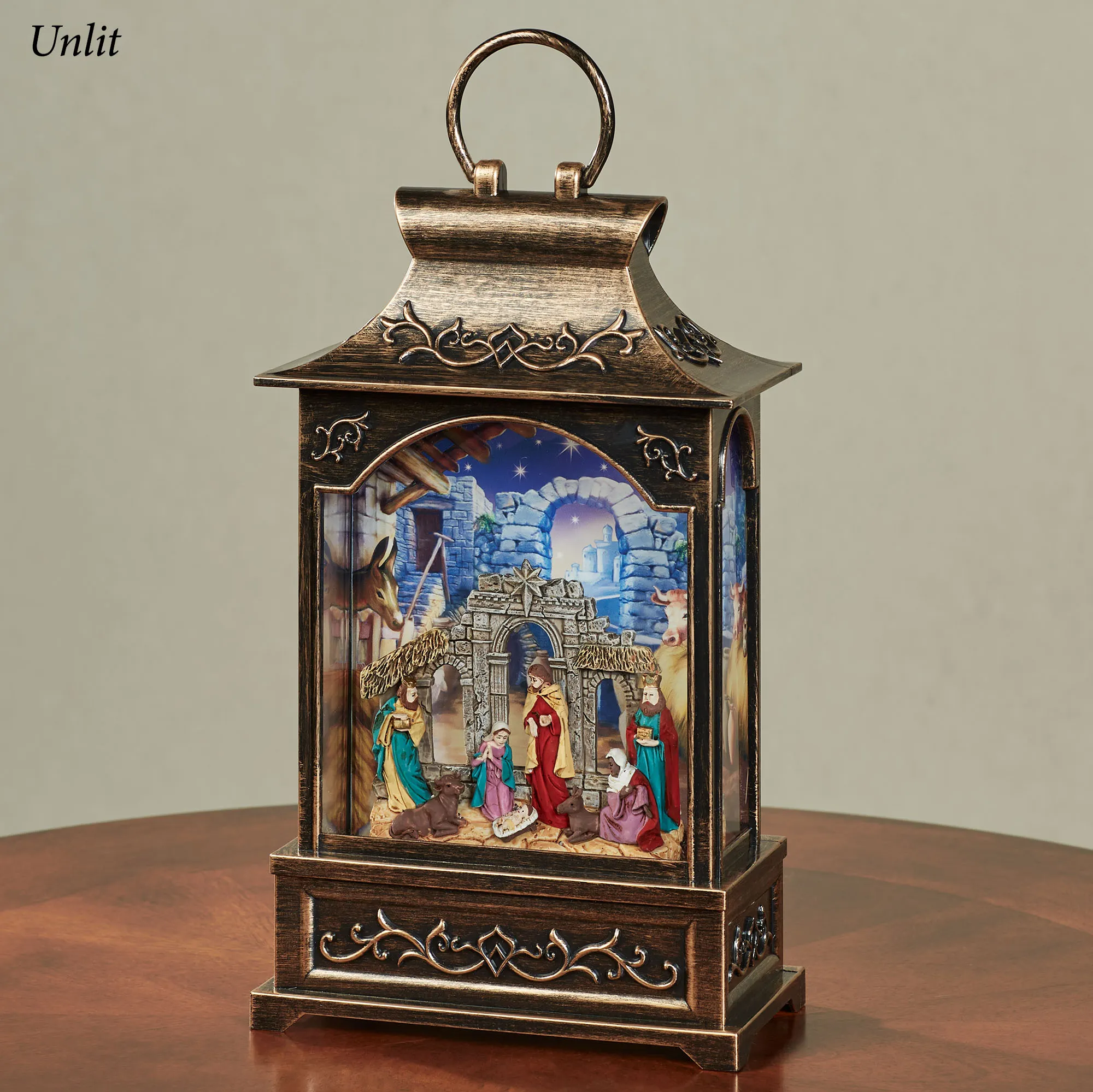The Nativity Scene Water Lantern is molded plastic with a liquid center.