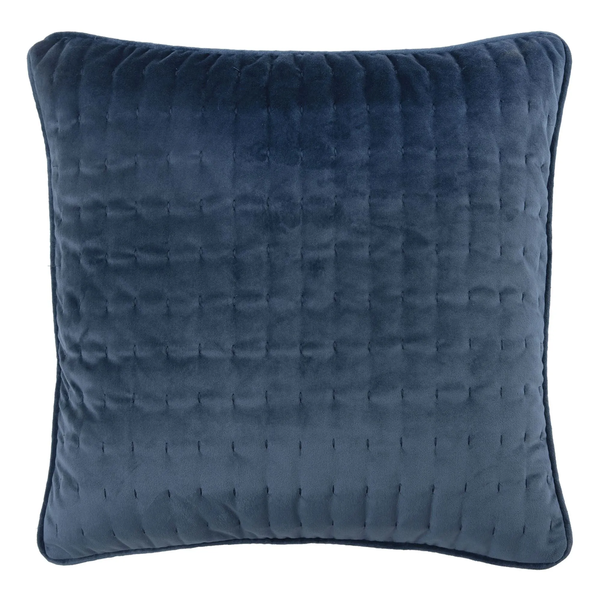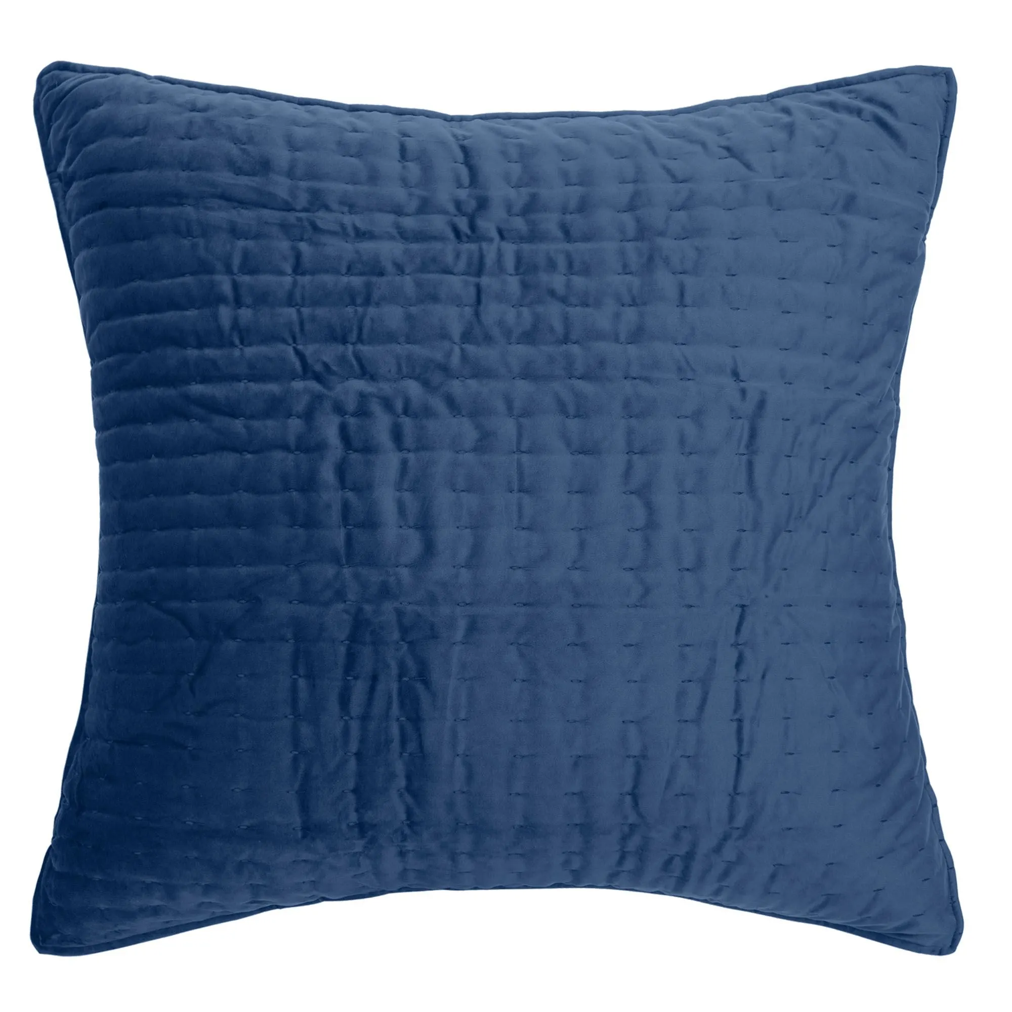 Padded European Sham is dark blue velveteen with stitched accents and tailored edges; zipper closure.