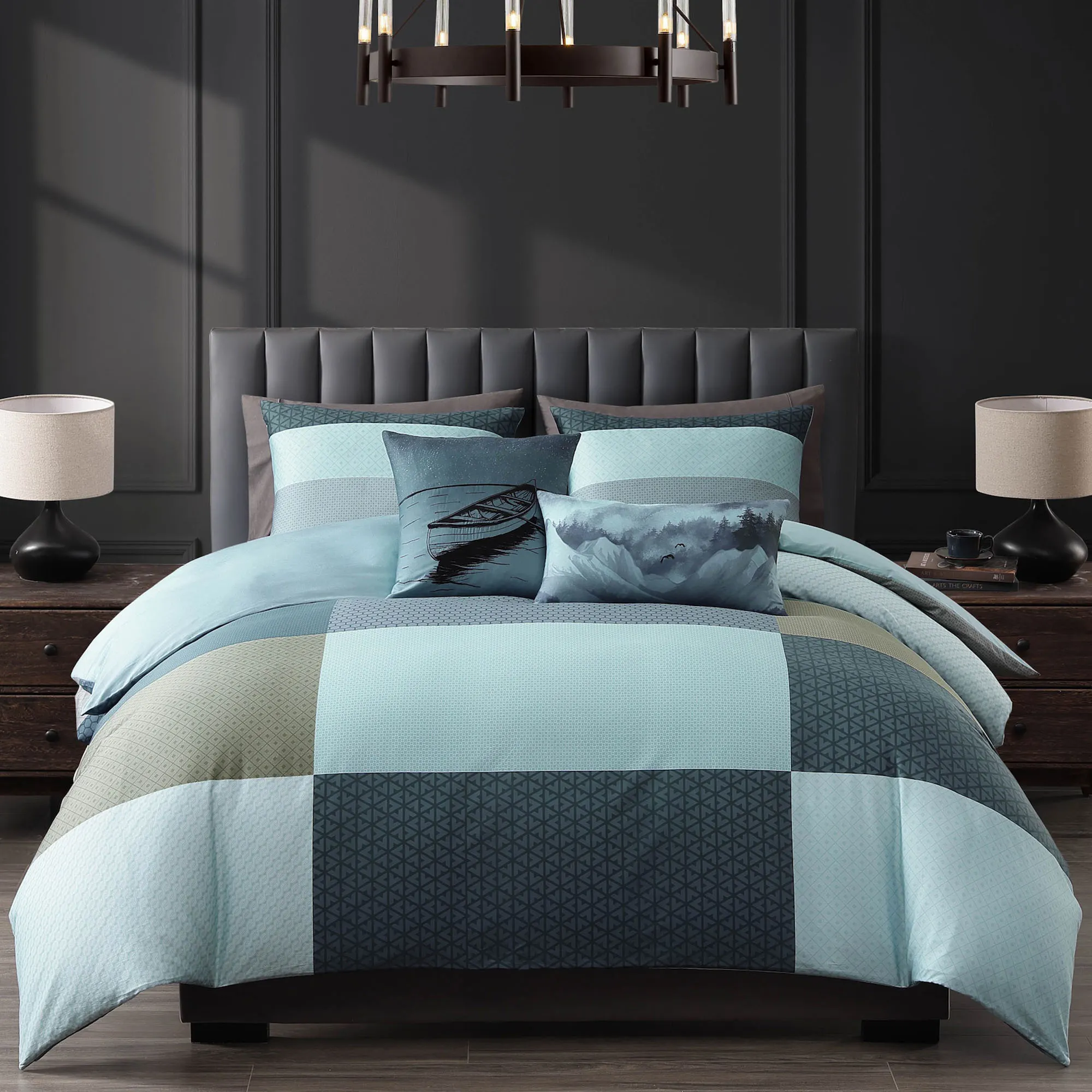 Nature Blue Reversible Color Block 5 pc Comforter Bed Set