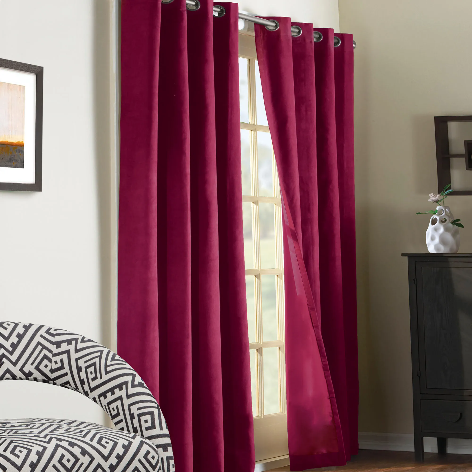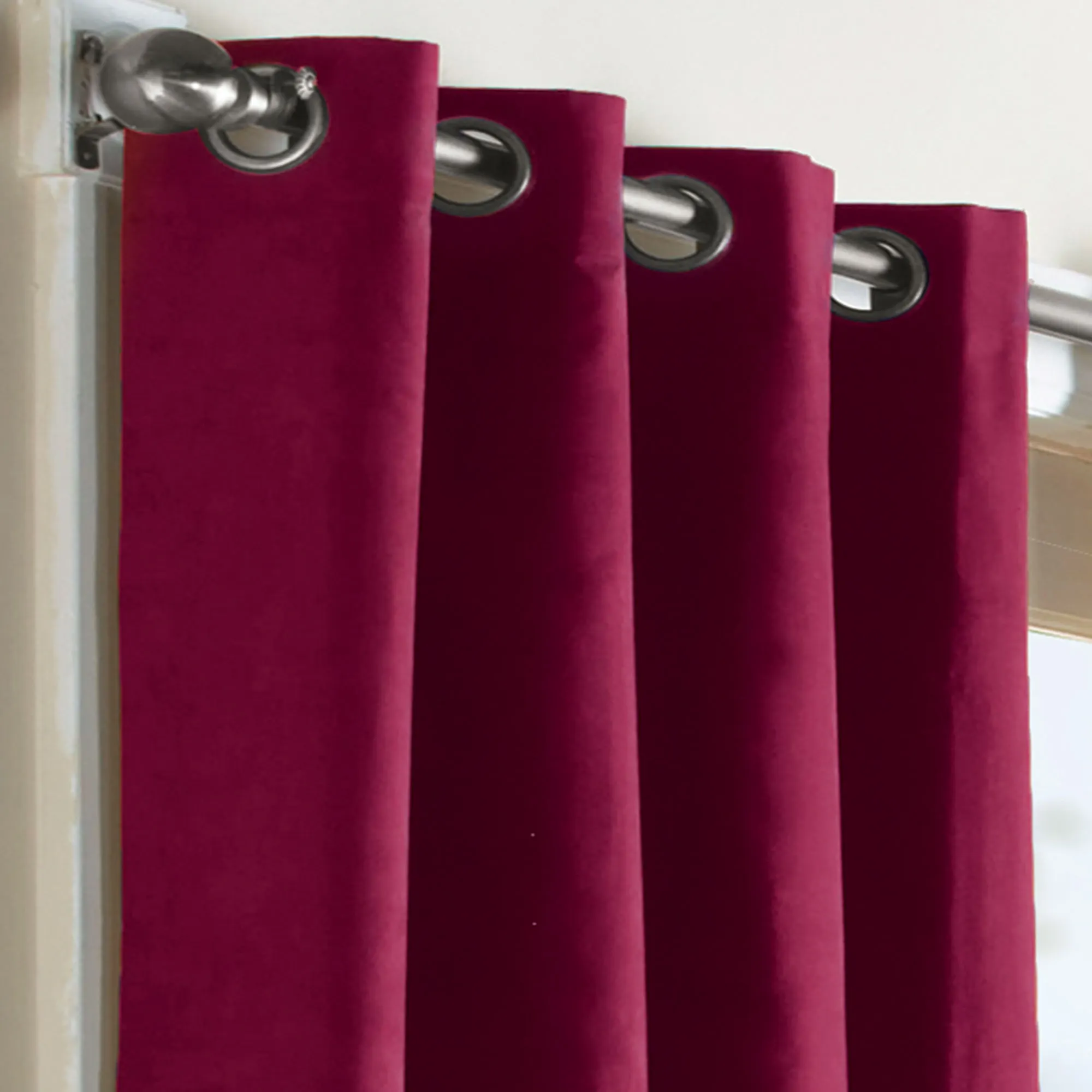Woven with room darkening properties, the Navar Thermaplus(TM) Grommet Curtain Panel adds a soft touch to your decor while keeping out unwanted light pollution. Each solid color, polyester faux suede panel has a woven back that helps block out light, saving you energy by blocking drafts and unwanted rays of sun. Eight 1.5" dia. metal grommets line the top of each. Chestnut and Light Taupe have oil rubbed bronze grommets, while Black and Burgundy have brushed steel grommets. Sold individually, each panel measures 54"W. Hand wash. Imported.