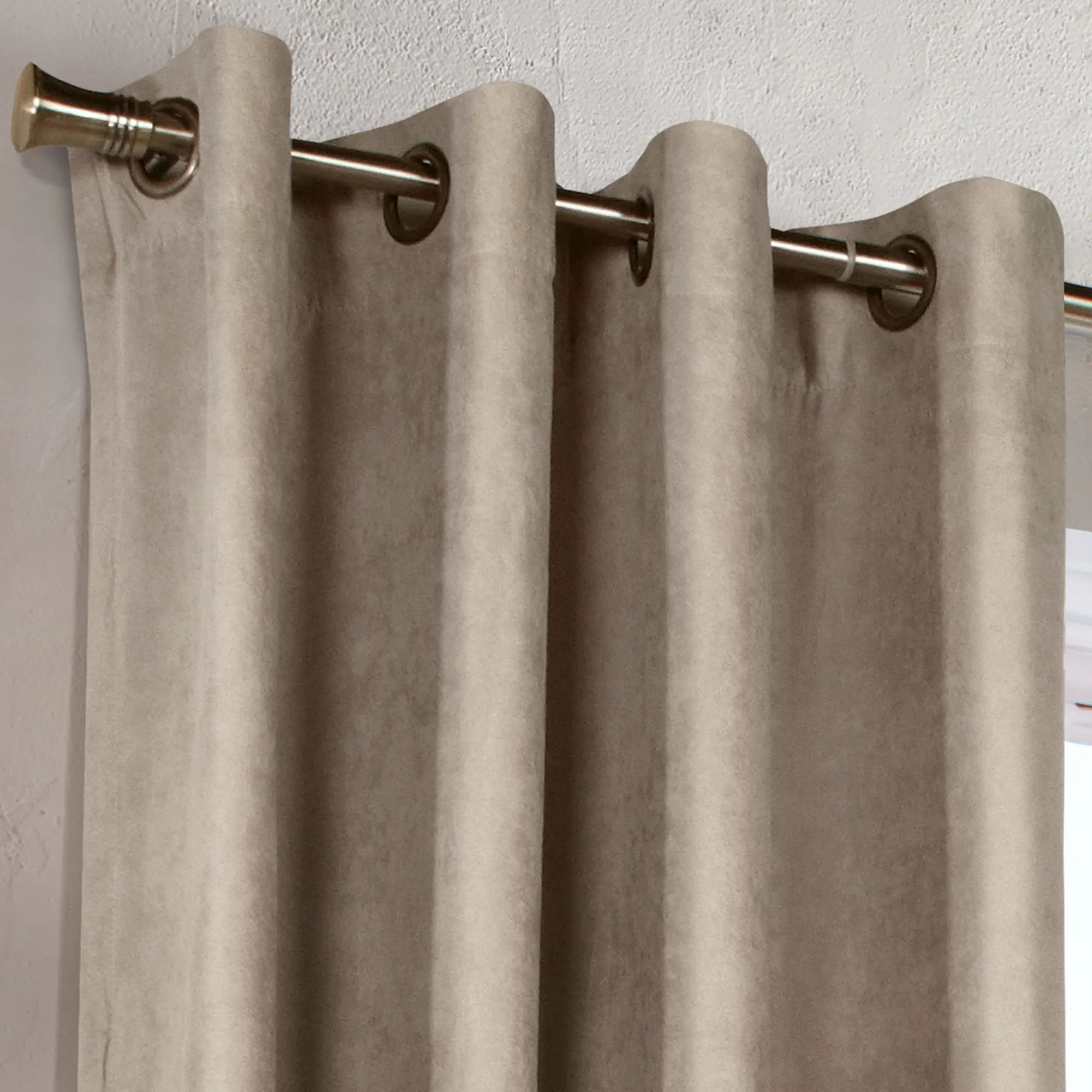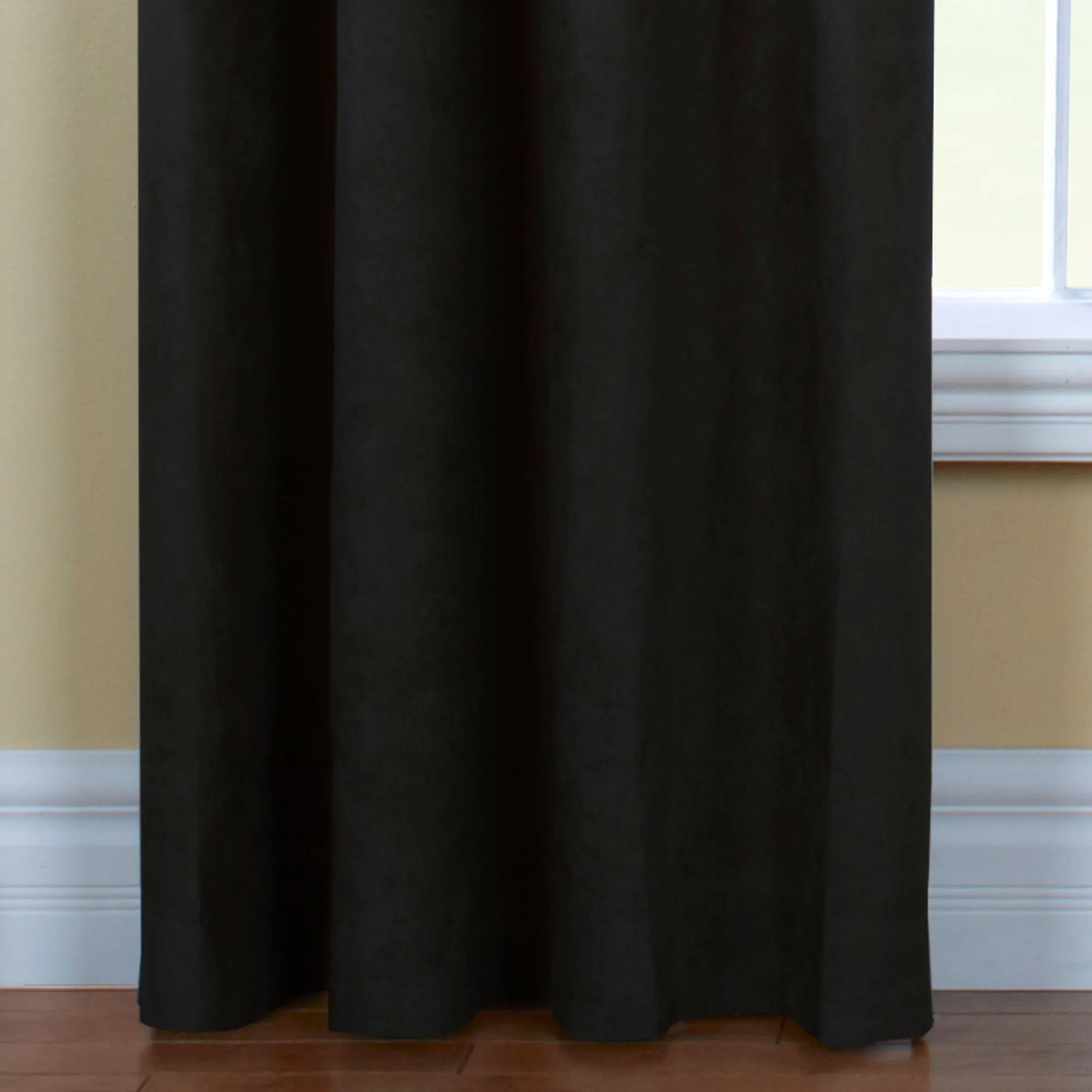 The Navar Thermaplus(TM) Grommet Curtain Panels are polyester faux suede with metal grommets. Imported.