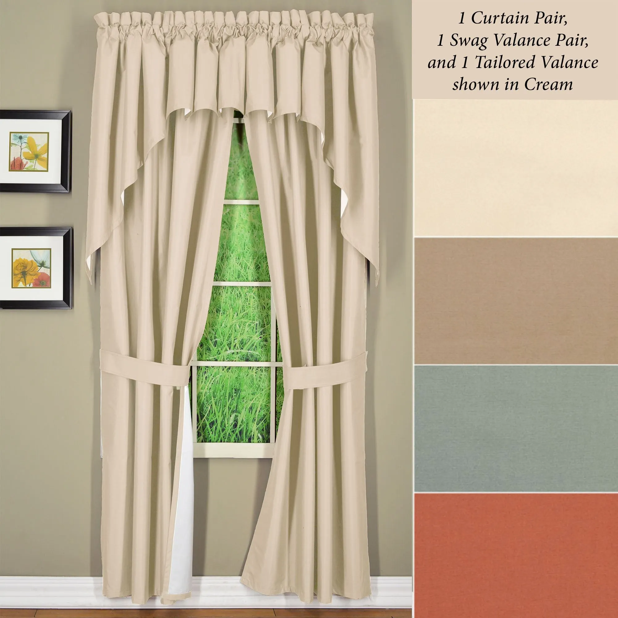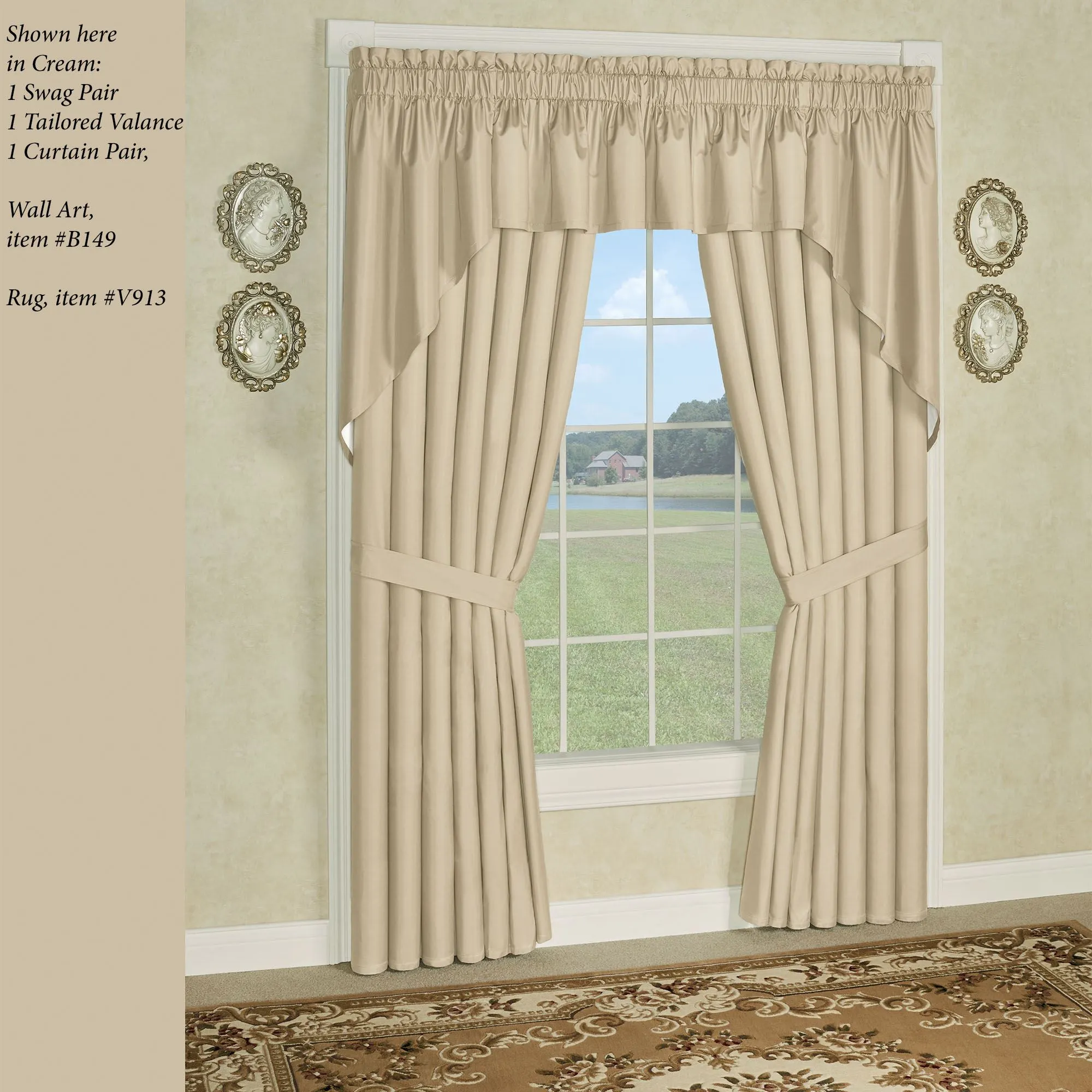 • Shown: 1 Curtain Pair, 1 Swag Pair, & 1 Tailored Valance