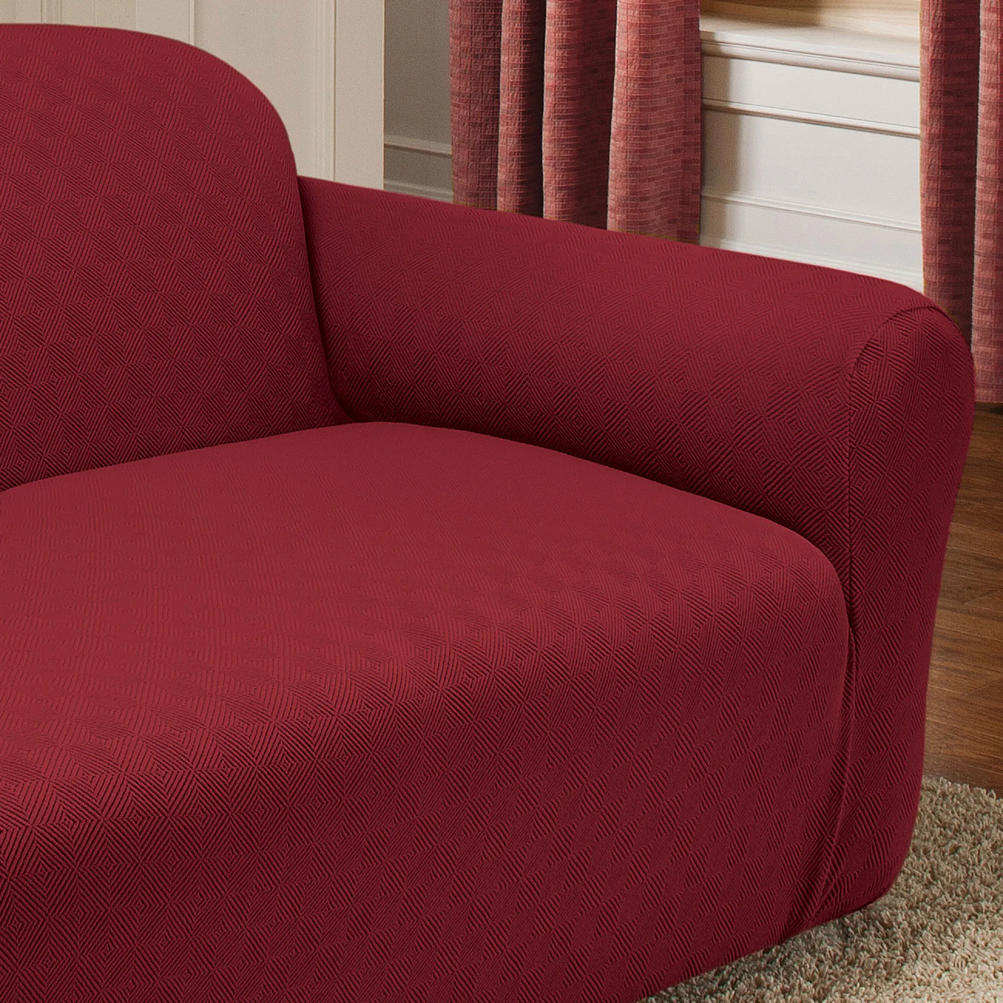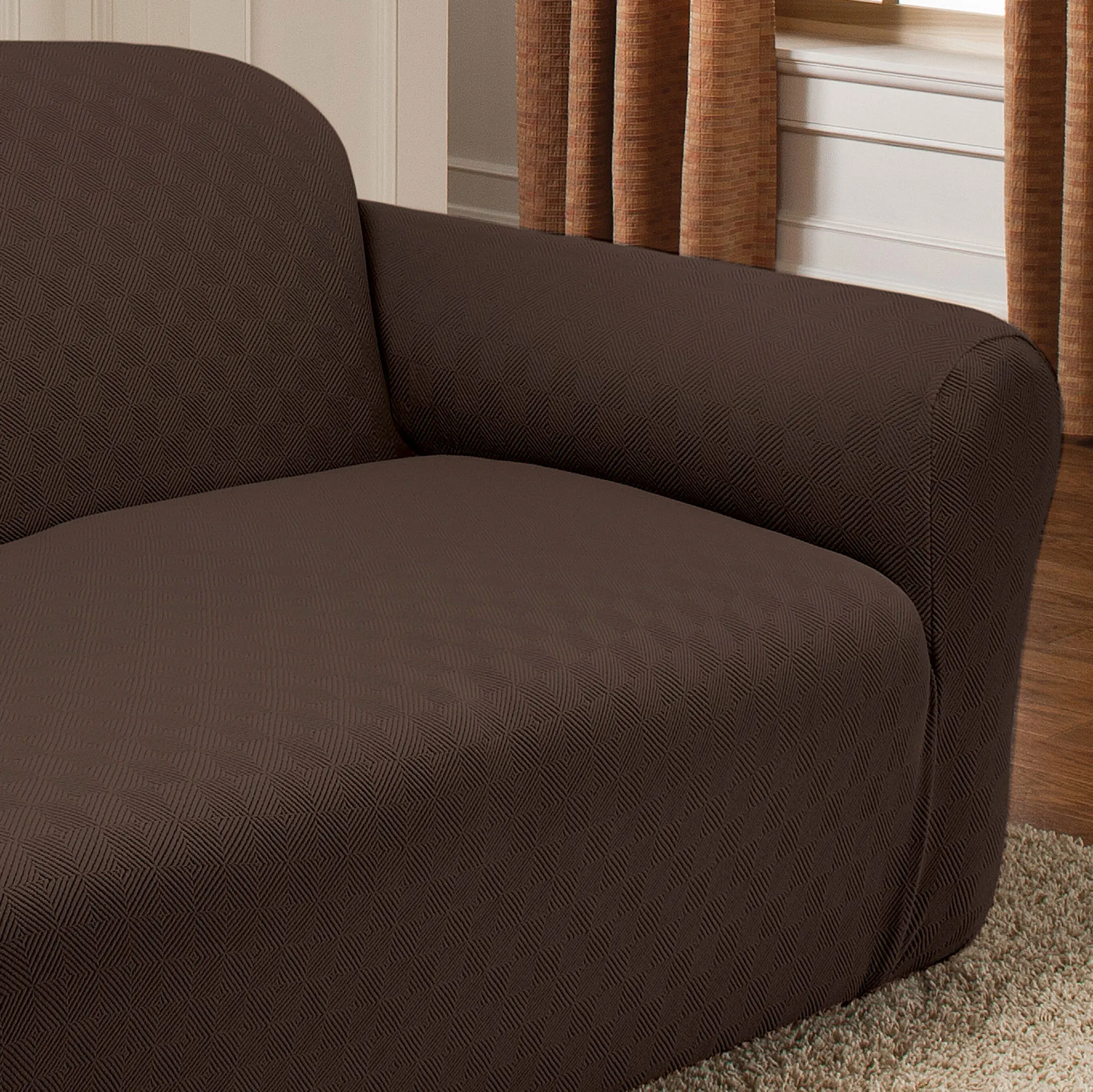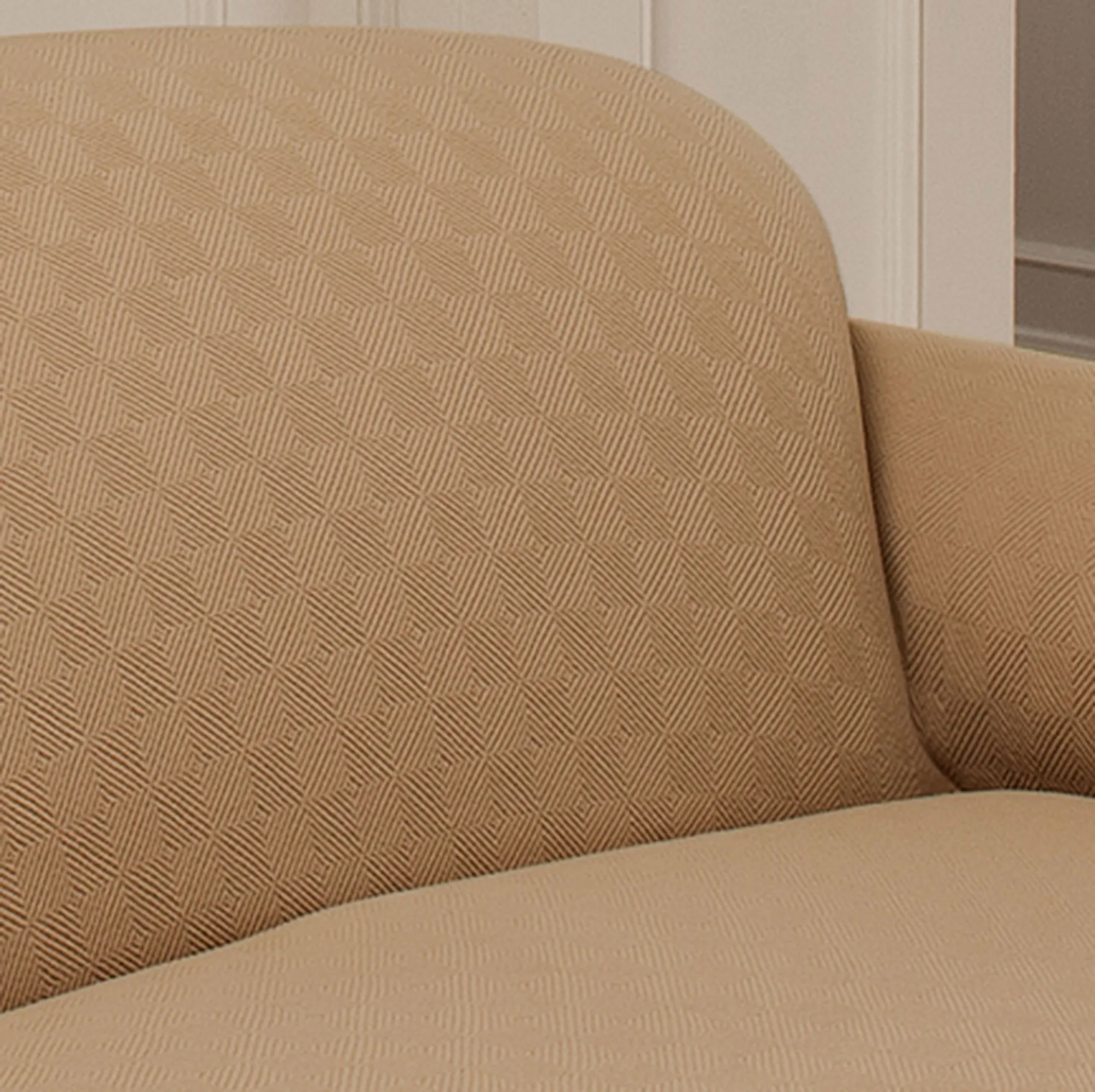 The Newport Sofa Slipcovers stretch over your furnishings, protecting them while adding a soft, intriguing design. Made of a polyester/spandex blend, each slipcover contains a raised block design. In addition to the Sofa Slipcover, the following styles are available: Recliner Slipcover, Jumbo Recliner Slipcover, Wing Chair Slipcover, or Loveseat Slipcover. Slipcovers cannot be used with all styles of furniture. Click on the Details tab for more information. Imported.