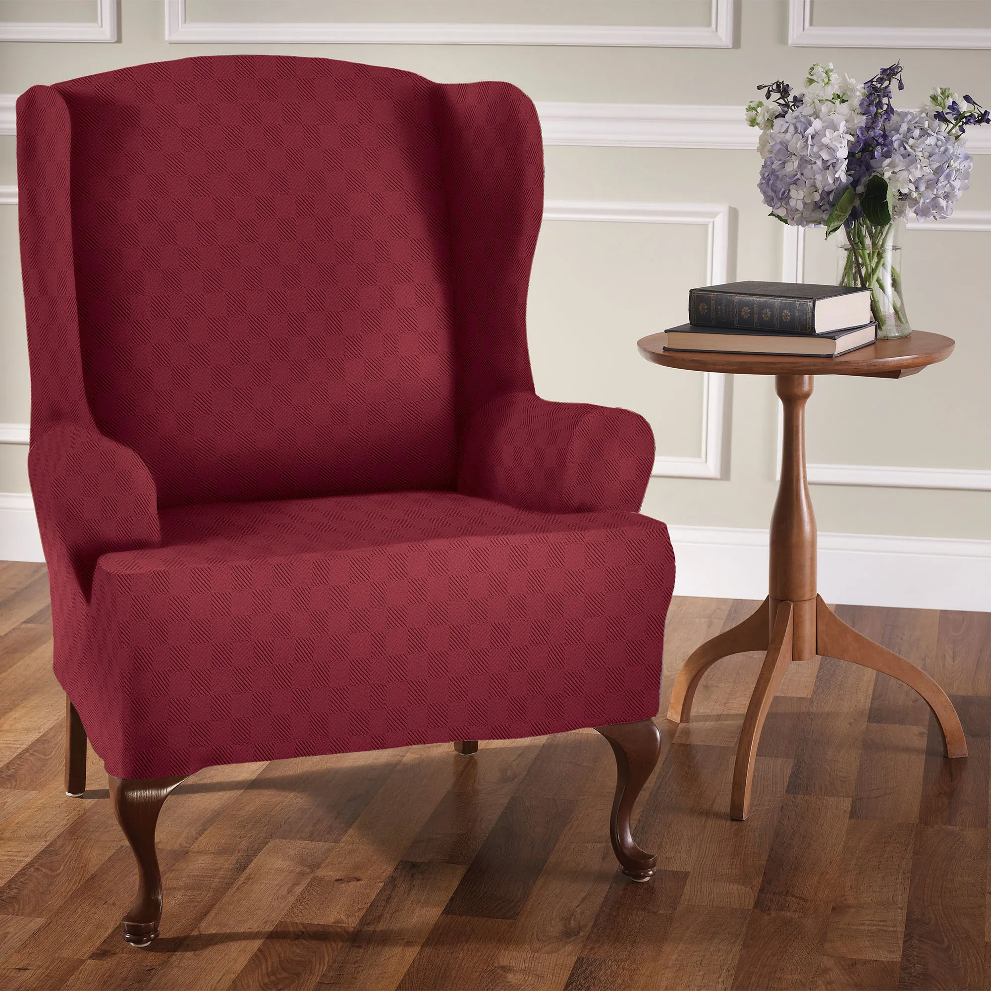 Wing Chair Slipcover is intended for use with T-cushion wing chairs; one-piece slipcover.