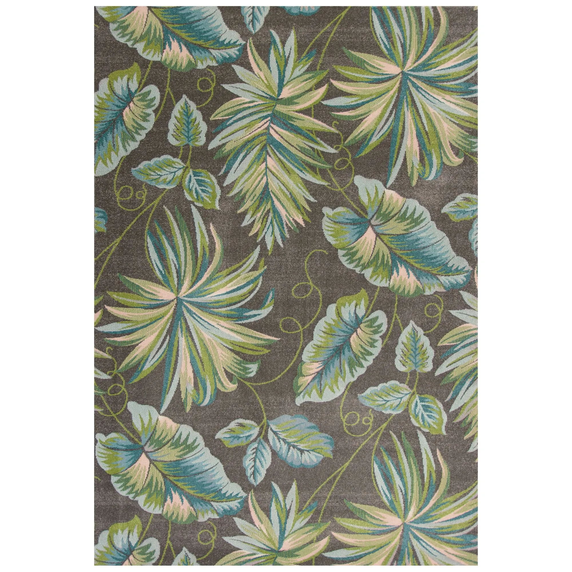 Fanning fronds and tropical leaves grace the Nicholls Area Rug with an exotic look. This machine-woven polypropylene area rug, .5" thick, includes shades of green, light blue, and dark charcoal. We recommend professional cleaning by a rug cleaner. Imported.