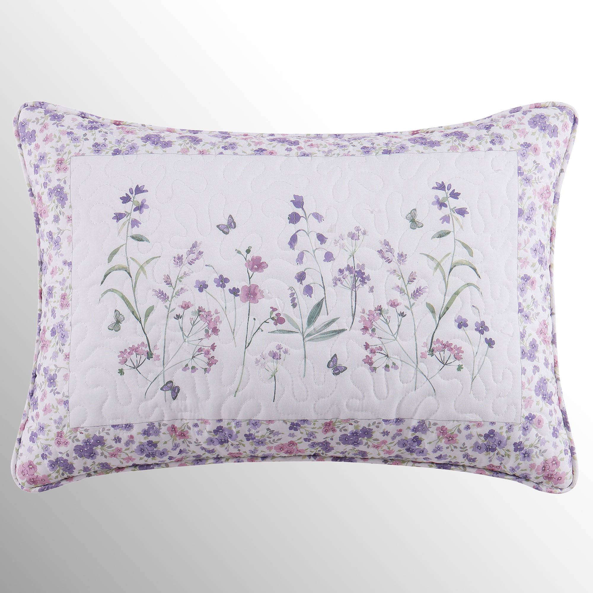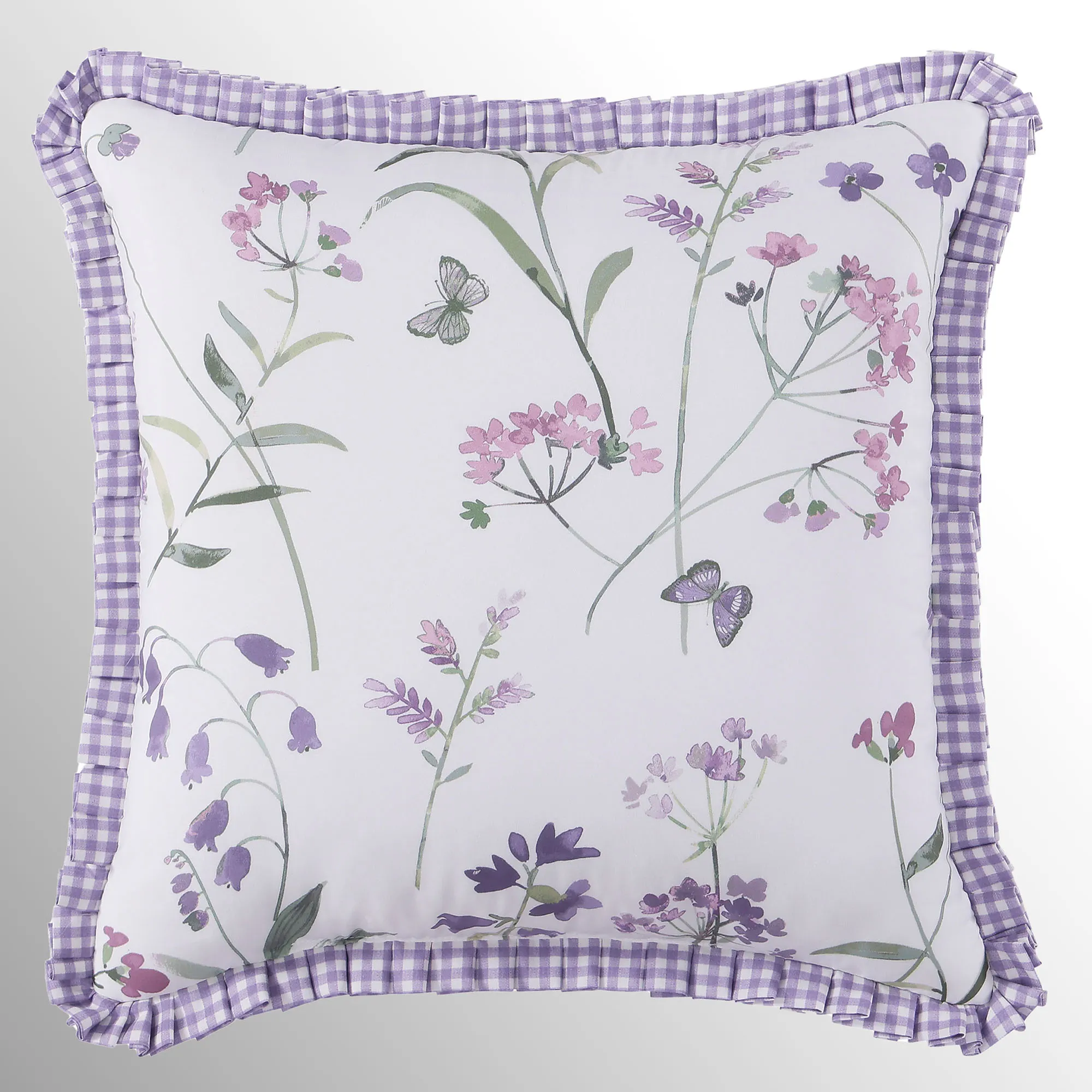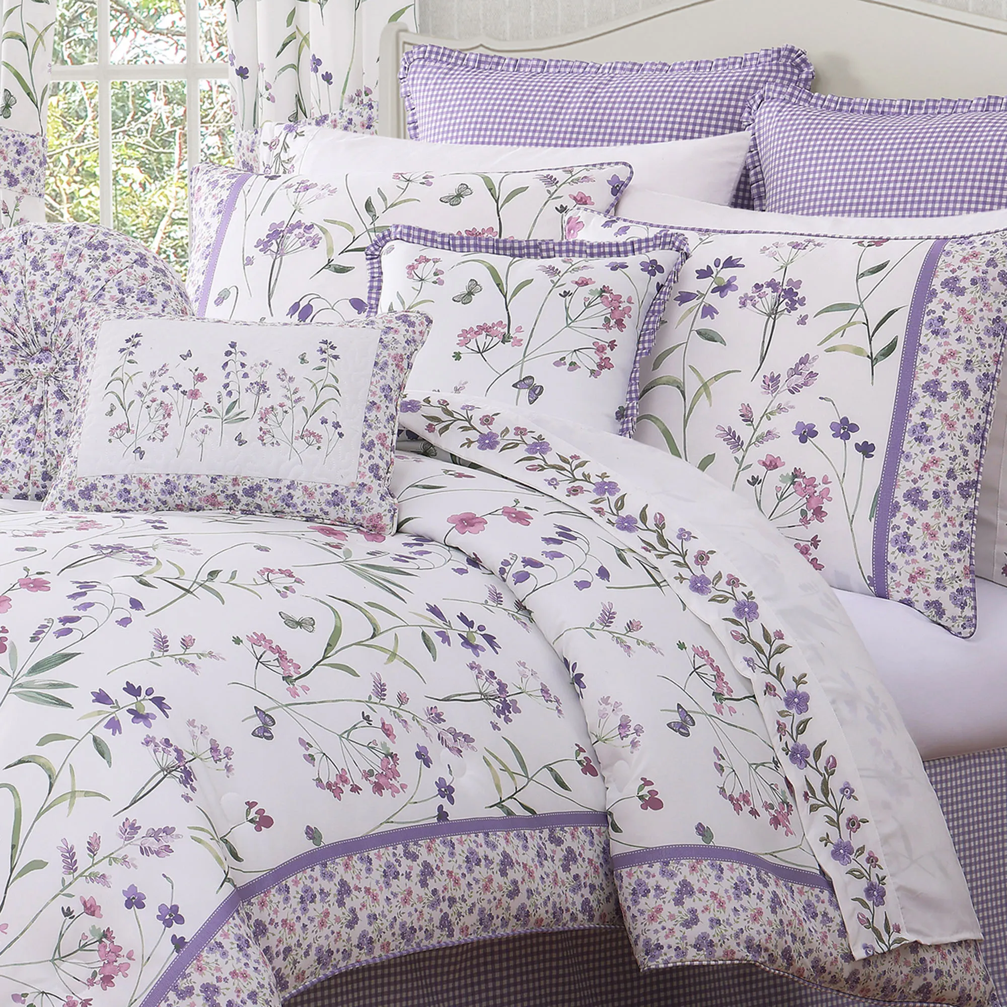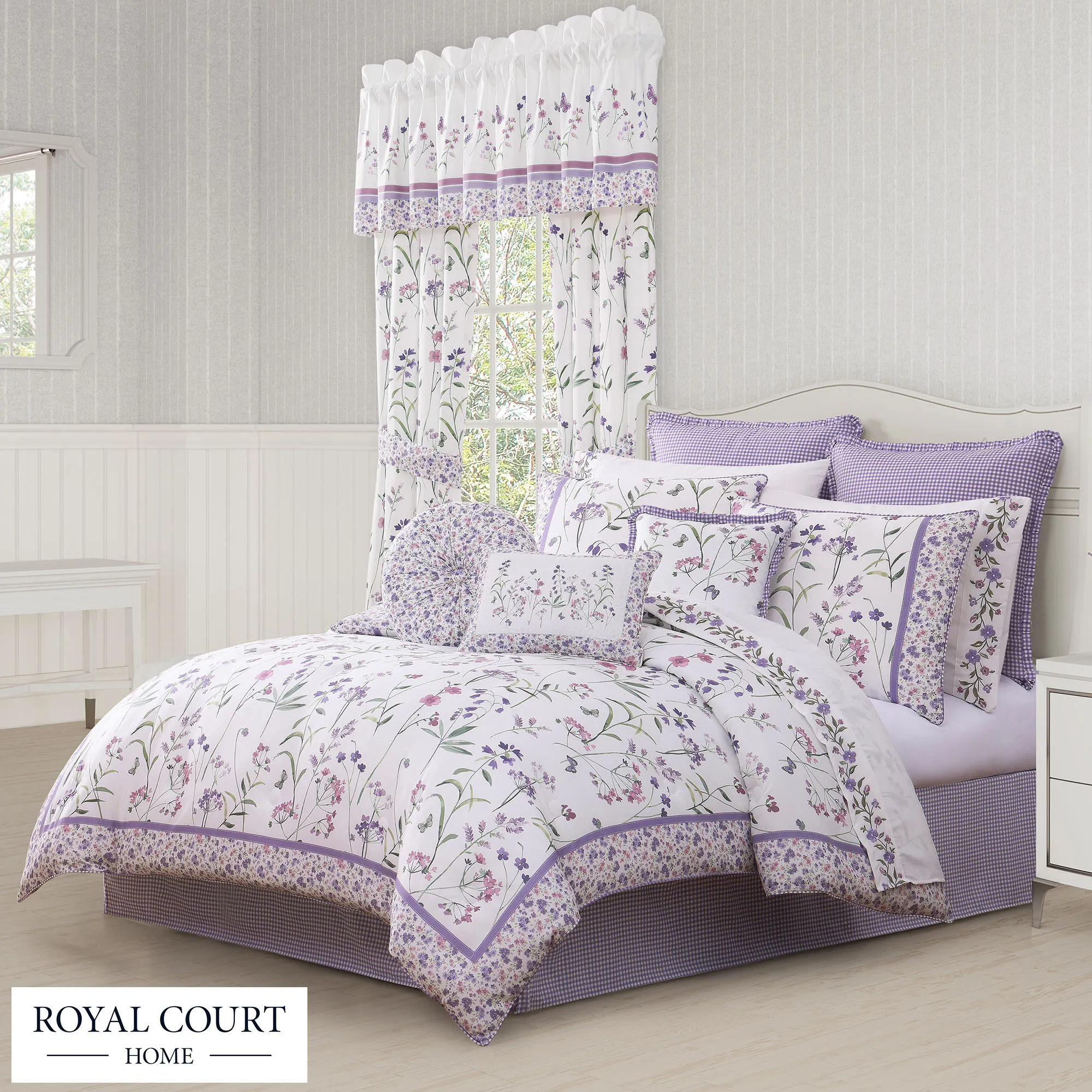 Charm your dreams with the sweet springtime sights of the Nola Floral Bedding. From Royal Court, the white polyester ensemble features wildflower sprigs, printed in a watercolor style, that blossom with charming orchid, lavender, and purple flowers to attract the fluttering butterflies. Miniature flowers bloom with further whimsy, while white and purple gingham plaid accents add classic charm.