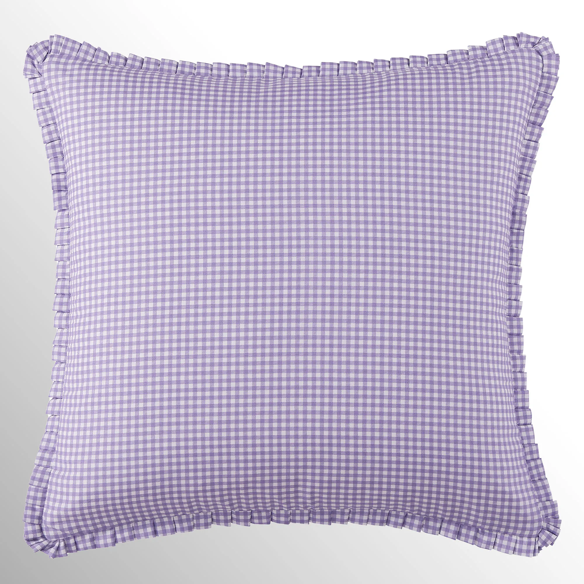 Reversible European Sham is gingham plaid with a pleated flange; zipper closure.