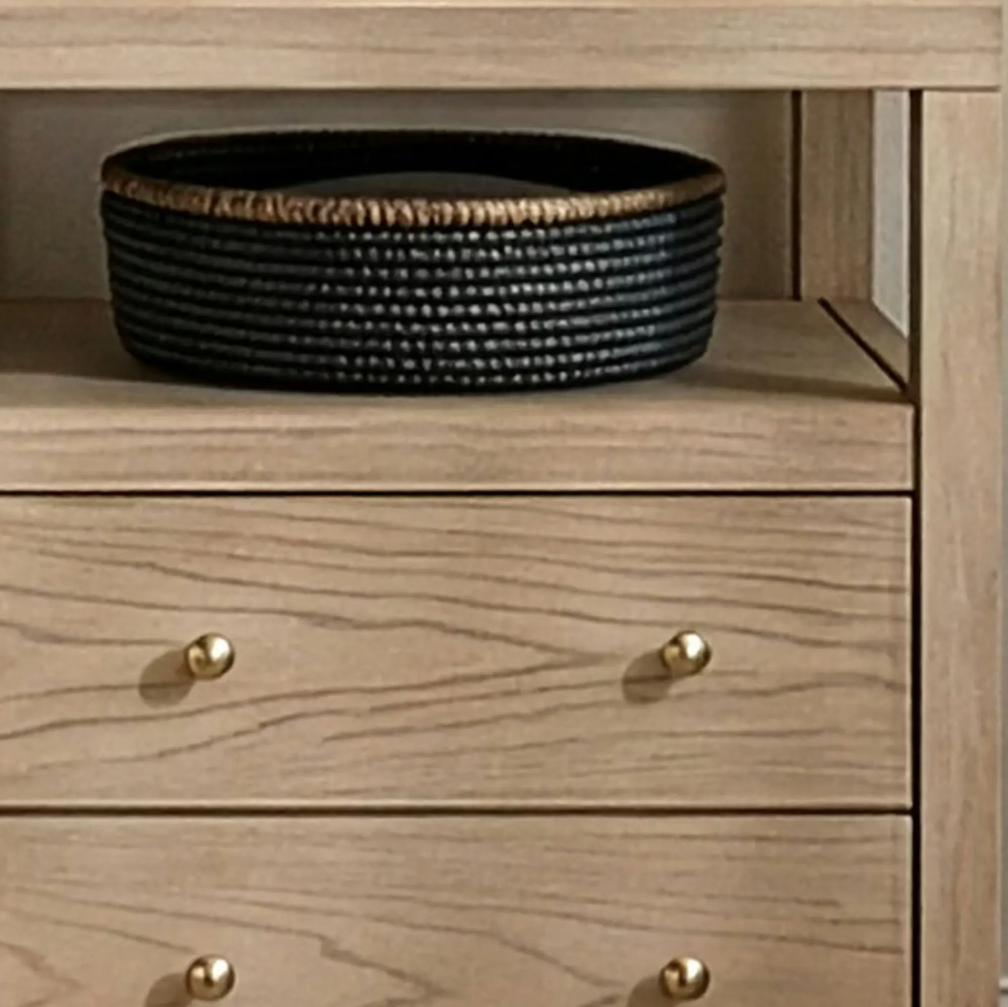 • Drawers have gold-finished metal pulls
