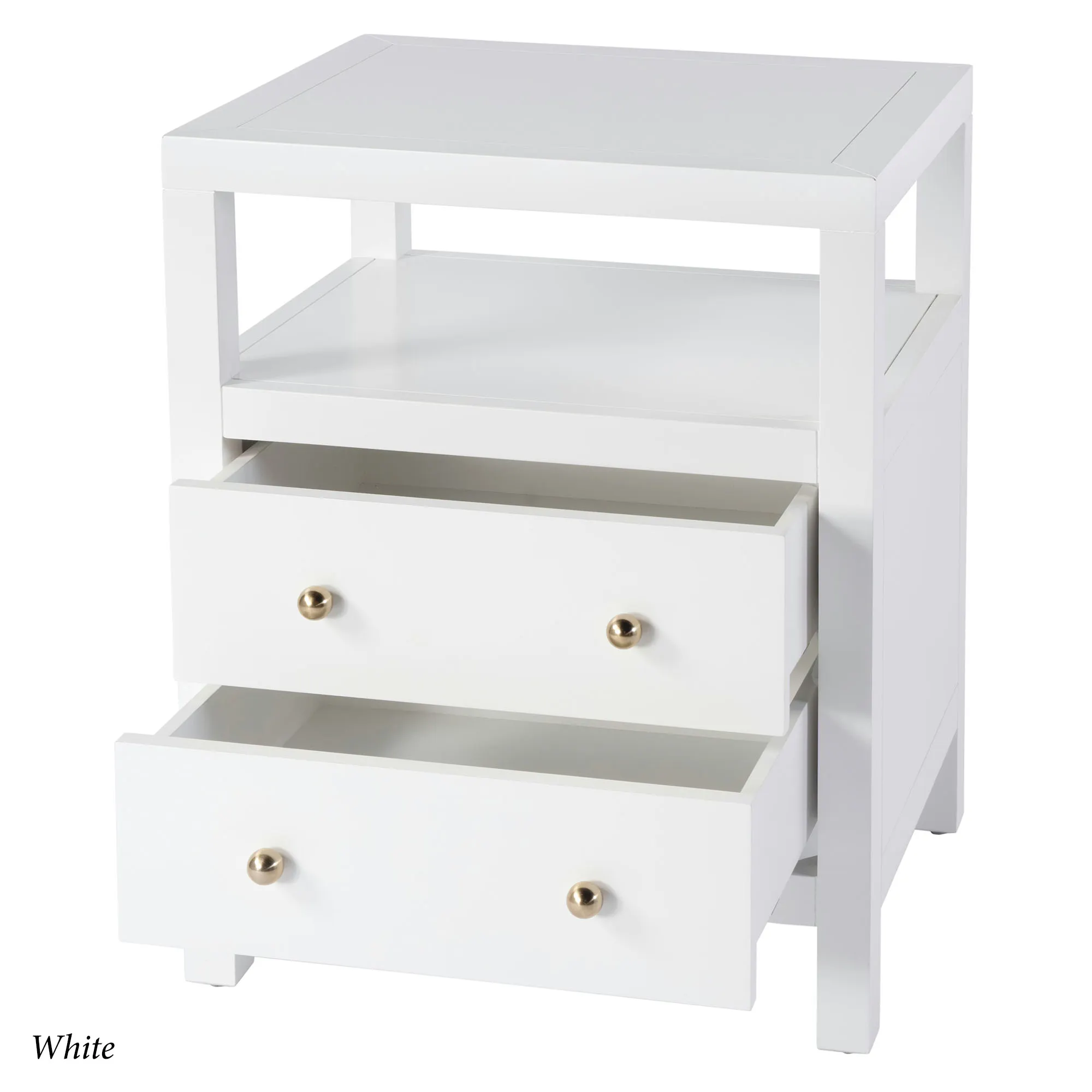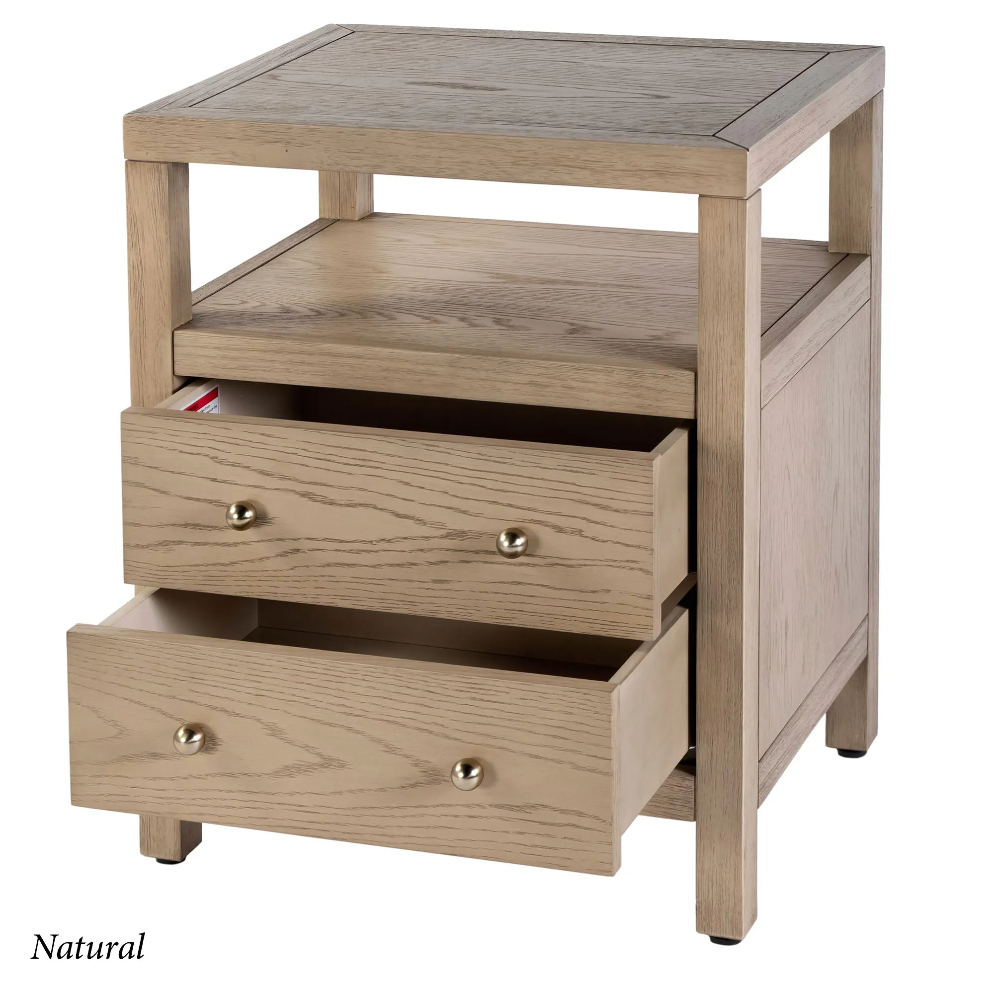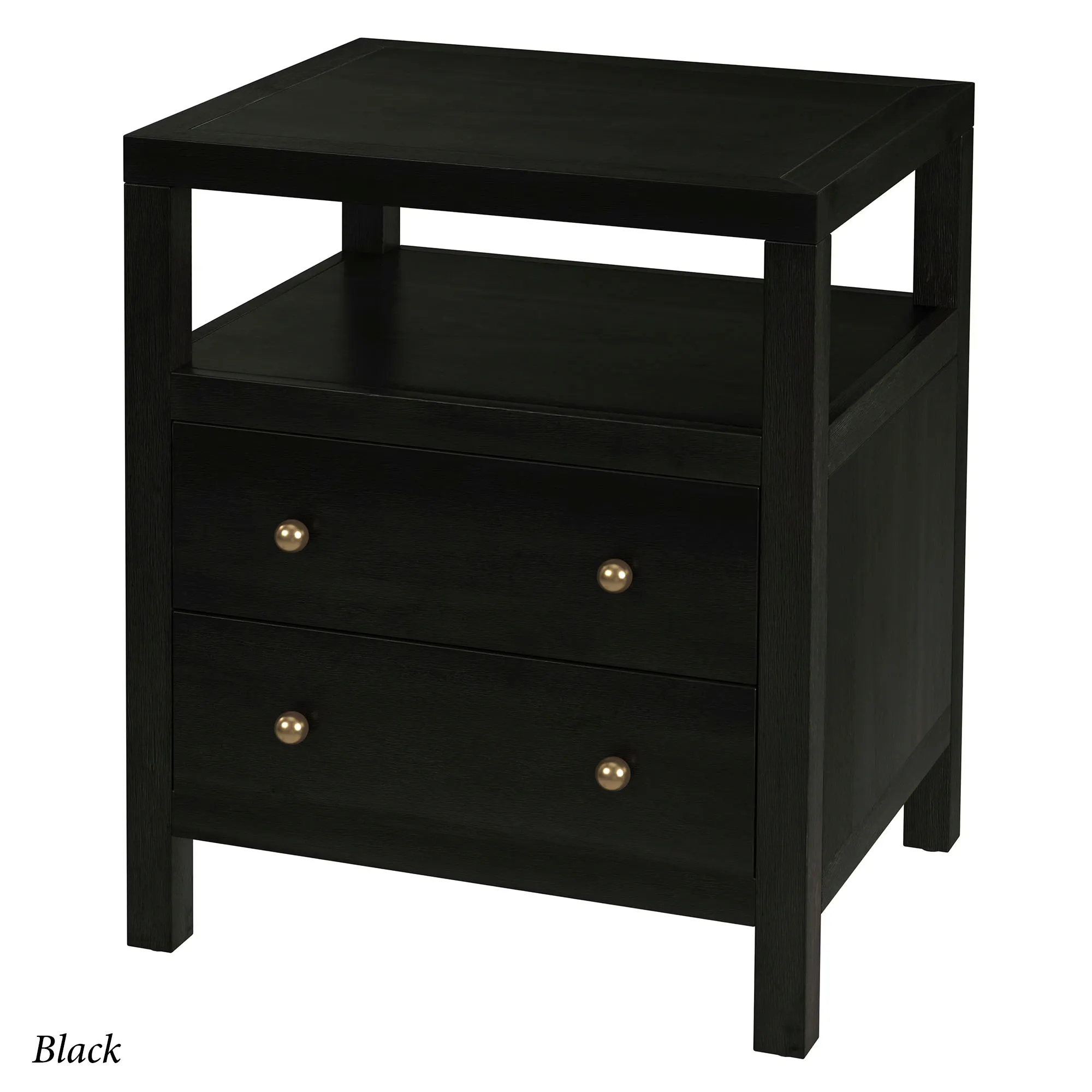 • Nightstand has a shelf and two drawers